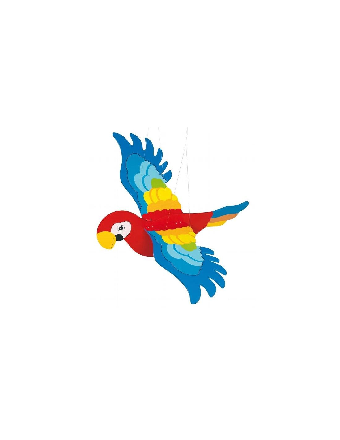 PAPAGAYO MOVIL El papagayo colorado, con una envergadura de 65 cm, da vueltas encima de la cama.