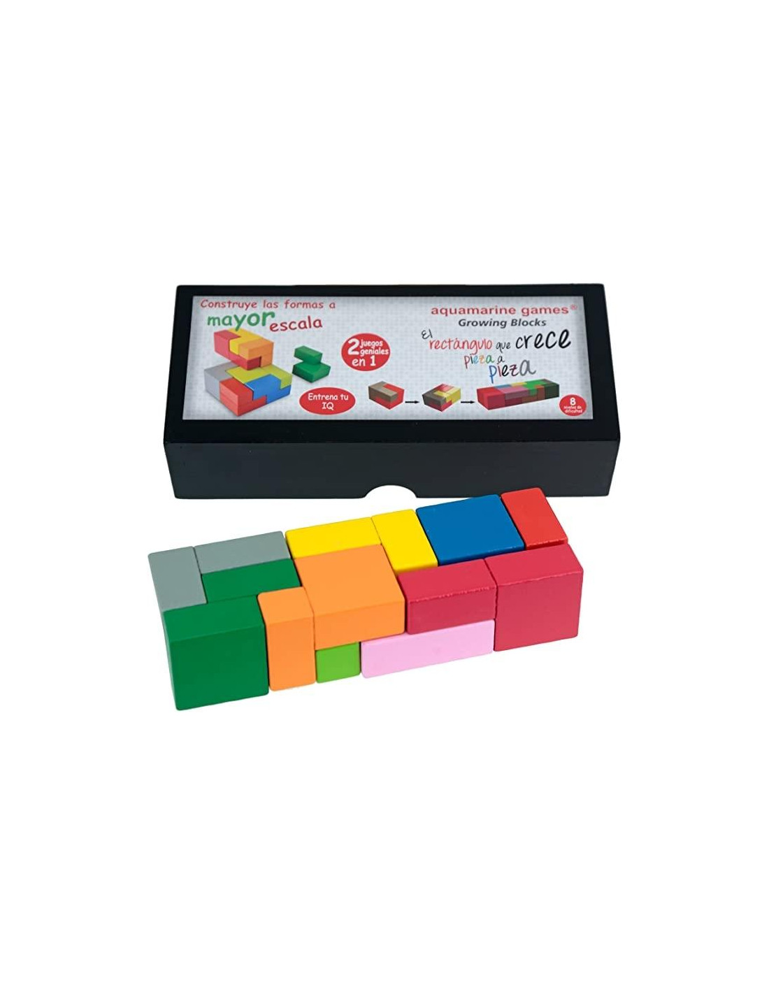 El rectángulo creciente: donde tienes que, partiendo de una sola pieza rectangular, ir añadiendo piezas, pero sólo puedes construir un rectángulo mayor.