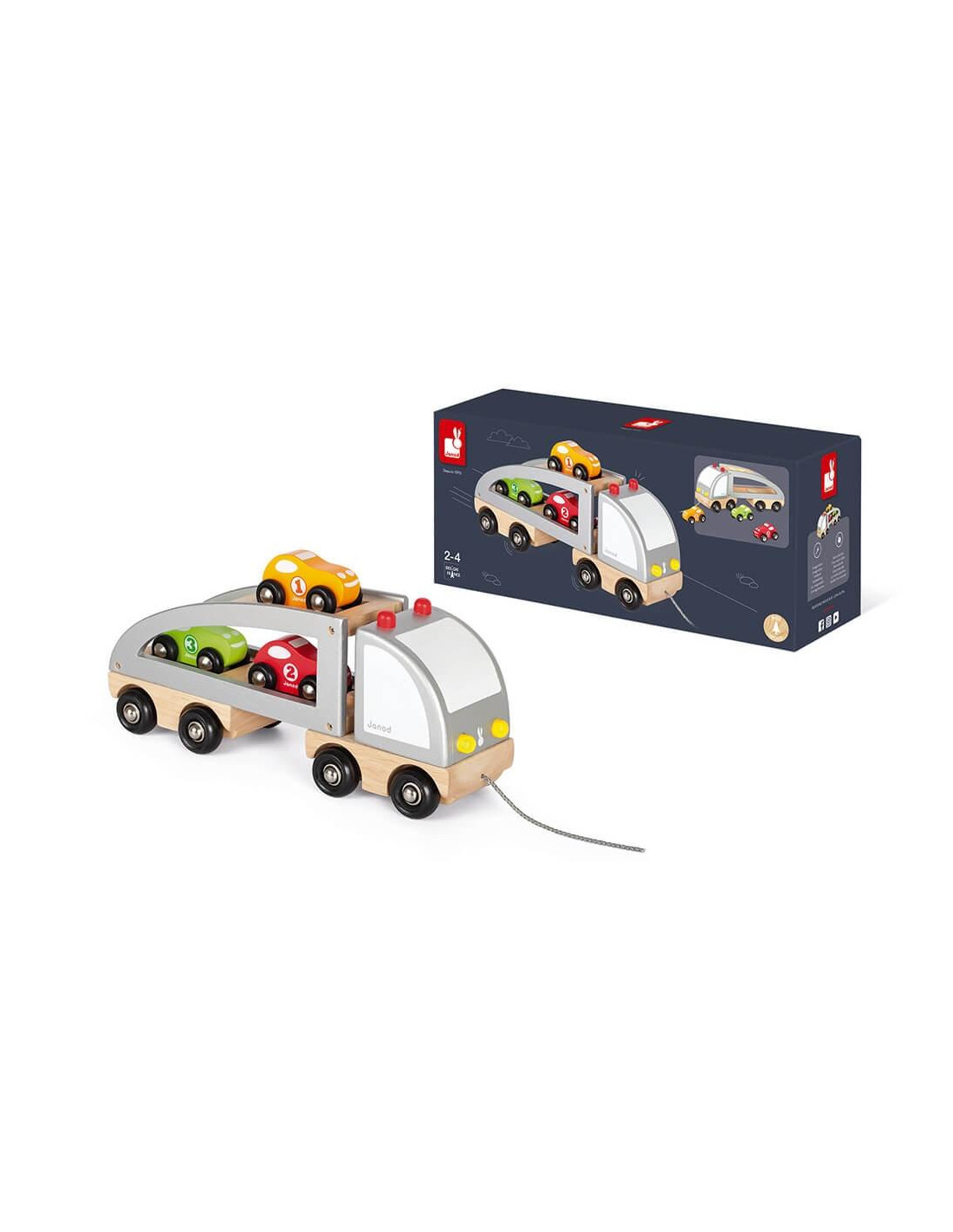 Un auténtico camión para arrastrar con remolque desmontable. ¡Incluye 3 bólidos increíblemente rápidos para poder organizar carreras desenfrenadas! ¡Práctico! Su bebé podrá remolcar los coches en el camión. Ideal para desarrollar la destreza manual de su bebé.