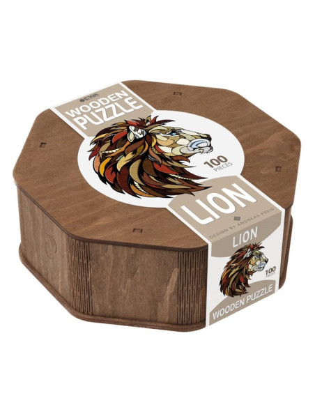 Los puzzles EWA se presentan en una bolsita de tela dentro de un pequeño cofre de madera, de forma octogonal, delicado diseño y con cierre.