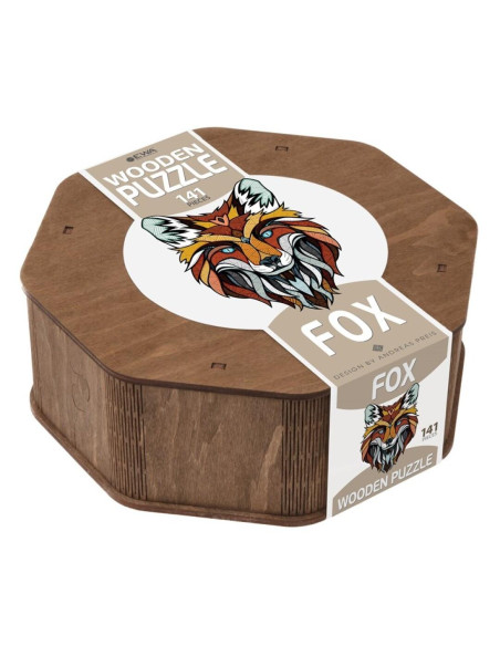 Los puzzles EWA se presentan en una bolsita de tela dentro de un pequeño cofre de madera, de forma octogonal, delicado diseño y con cierre.