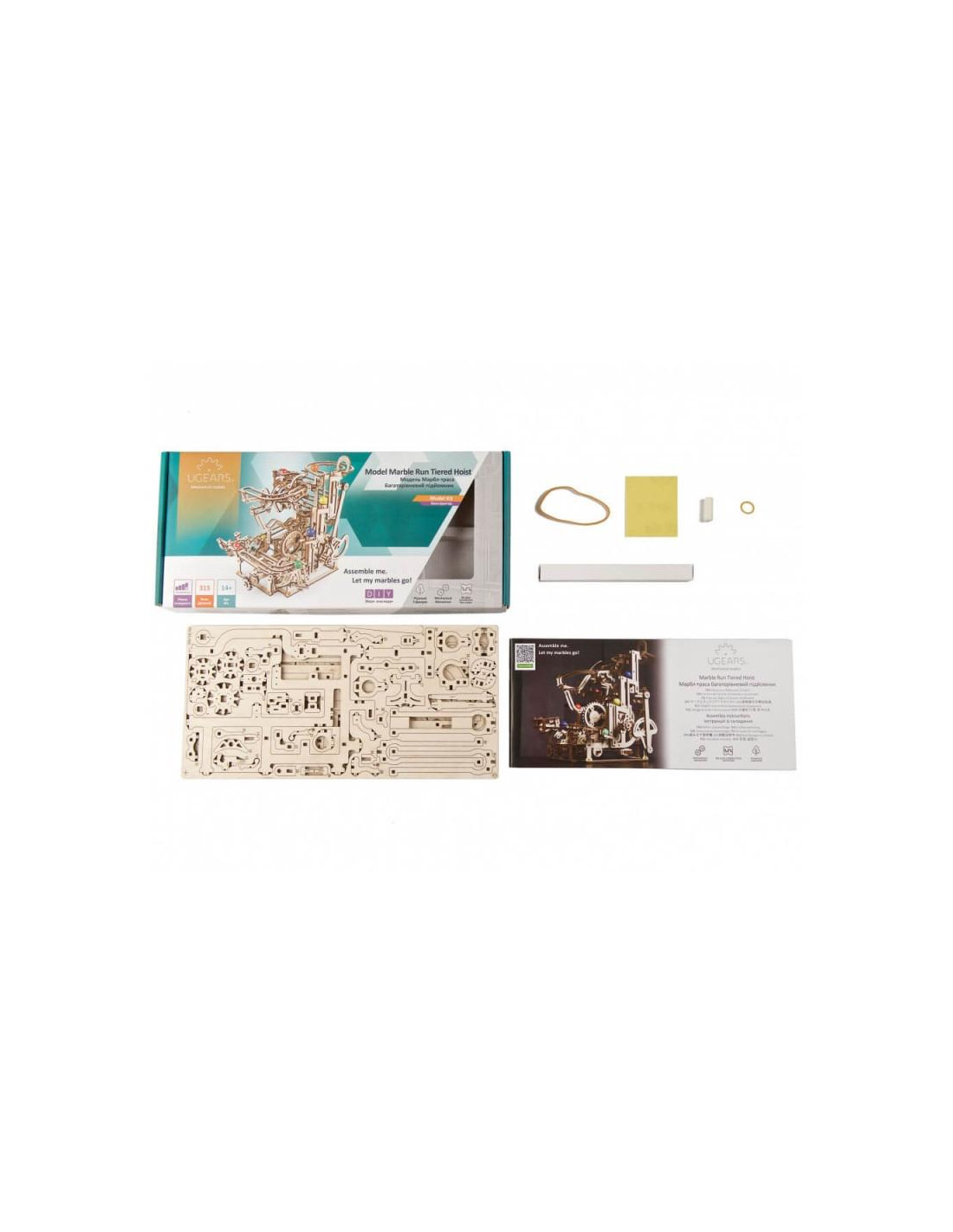 La Carrera de Canicas de elevador escalonado es un reto divertido para modelistas experimentados/as — una gran idea para un "auto-regalo" DIY o para un regalo para otros/as modelistas de su entorno. Disfrute de las horas divertidas de construcción y cuando haya terminado su obra maestra, envíe las canicas a su viaje inaugural. Observe su máquina ingeniosa elevando las canicas peldaño a peldaño antes de enviarlas hacia abajo por una rampa de varios niveles, por una montaña rusa o a una trampa, de la que las canicas sólo podrán escapar "with a little help from their friends". La Carrera de Canicas de elevador escalonado de Ugears queda maravillosa como intrigante máquina independiente o puede formar parte de una colección más compleja de carreras de canicas interconectadas de Ugears.