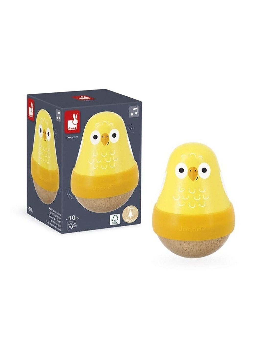 ¡Cómo se bambolea este pájaro al son del tintineo de un cascabel al volcarlo! Una vez en la mano, su hijo se divertirá haciendo que se bambolee de derecha a izquierda. ¡Es mágico! El tentetieso siempre vuelve a su posición inicial. El musical tintineo estimulará la audición del niño. Juguete de madera FSCTM y pintura al agua. Juguete de estímulo para niños a partir de 10 meses.