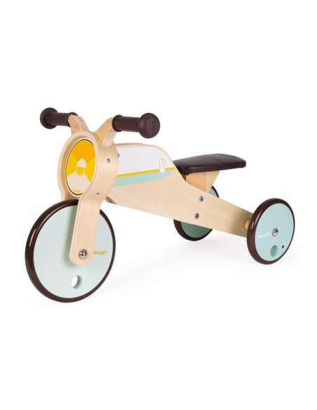 Juguete de madera Para niños mayores de 12 meses Triciclo evolutivo 2 en 1 que incluye un balancín desmontable y un pequeño triciclo sin pedales. A partir de los 12 meses, ¡el niño podrá disfrutar del balanceo y muy rápidamente también de la velocidad cuando se siente al manillar de su primer triciclo! Este producto 2 en 1 desarrolla primero el sentido del equilibrio y luego la motricidad global mientras el aventurero se dispone a descubrir el mundo que lo rodea.