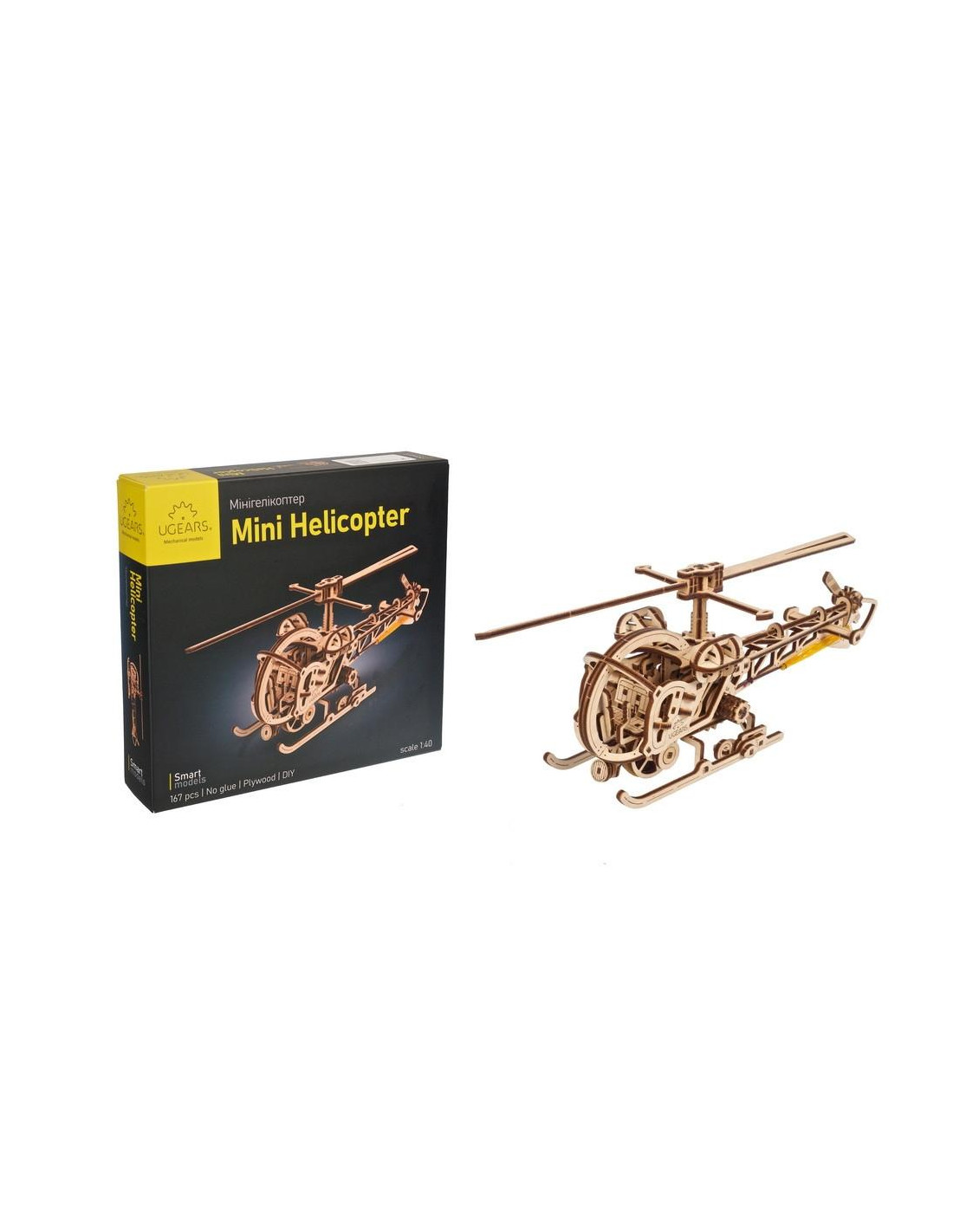 MINI HELICÓPTERO Maqueta macánica para construir Con 167 piezas es una maqueta fácil de construir, pero el diseño excepcional de Ugears hace que su helicóptero de juguete aun así tenga su efecto "¡Wow!". Para montar su maqueta simplemente saque las piezas de las tablas de madera de contrachapado de alta calidad y júntelas encajándolas según las instrucciones ilustradas que se entregan en el kit. Asegúrese de lijar y lubricar las partes móviles con el papel de lija y la cera que encontrará en el kit, y de "rodar" bien estas partes, moviéndolas varias veces antes de realizar el montaje final, para garantizar el funcionamiento óptimo de su Mini Helicóptero.