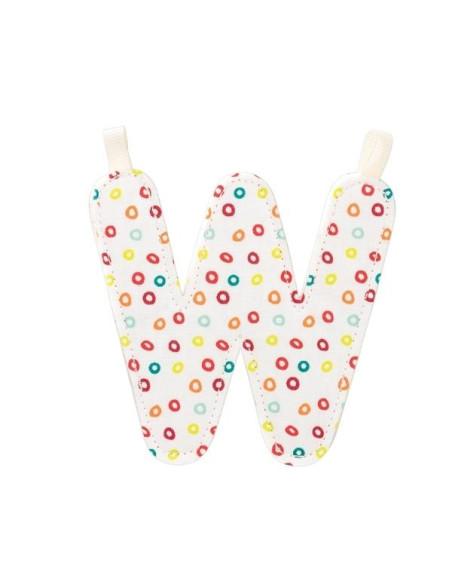 Decora la habitación de los pequeños con esta preciosa letra W de tela. Crea un nombre, un mensaje o un deseo junto a las demás letras para colgarlas en la pared, en el cabecero de la cama o en la puerta. Y, algunas de las letras pueden girarse para mostrar un color y estampado distinto. ¡Además, en cada vocal hay un divertido personaje de Lilliputiens!