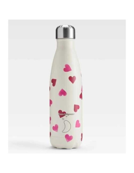 BOTELLA CHILLYS EMMA CORAZONES 500 ml. Con doble puente térmico, el cual mantiene los líquidos frios 24 h, y los calientes 12.