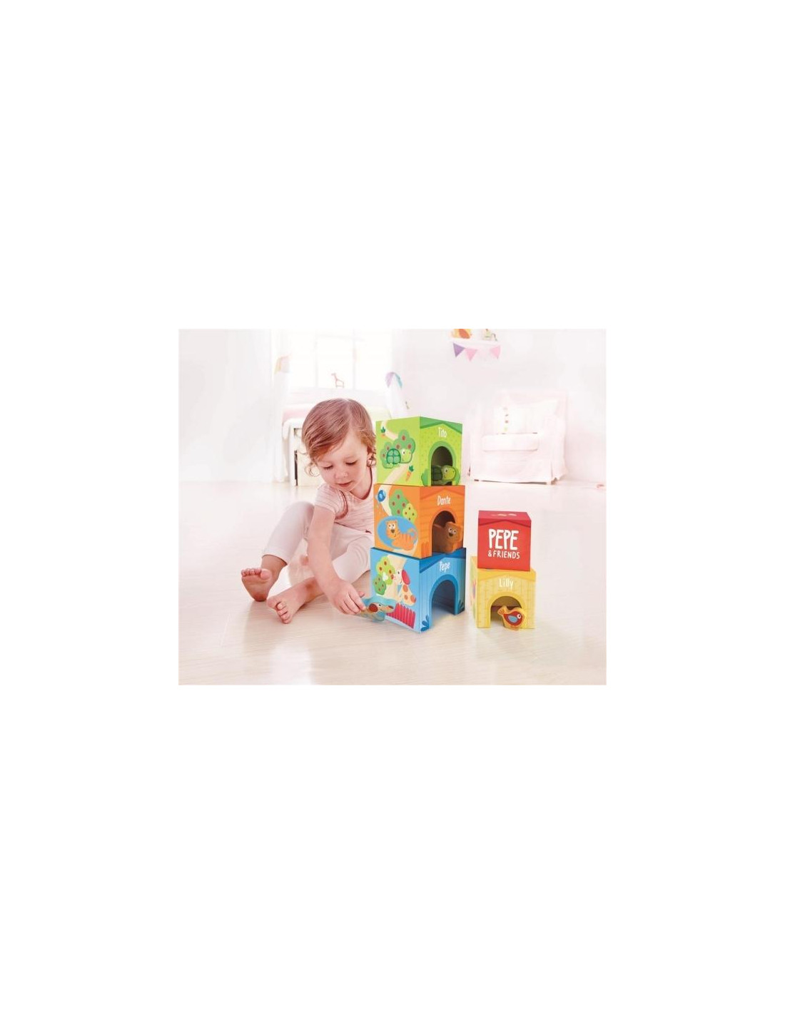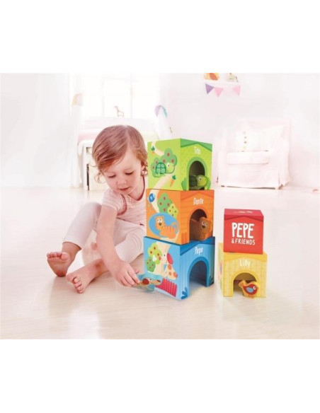 ¡Los preciosos y divertidos dibujos que tienen estos cubos apilables Pepe & Friends, son perfectos para construir y aprender! Los peques podrán apilar, clasificar, estudiar los paisajes y empezar a contar. Pueden intentar apilar los cubos en orden distinto todas las veces que quieran para experimentar y manipular las piezas.