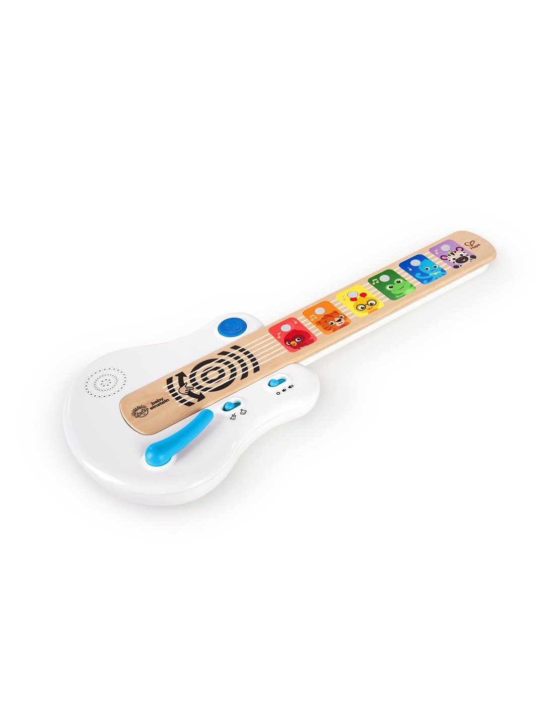 Esta guitarra de madera Baby Einstein es táctil y cada animalito corresponde a una nota diferente. Este instrumento es colorido, divertido y los va a introducir en el mundo musical. Cada tecla tiene un color, personaje y corresponde a una nota diferente para que se familiaricen con los diferentes sonidos y combinaciones musicales.