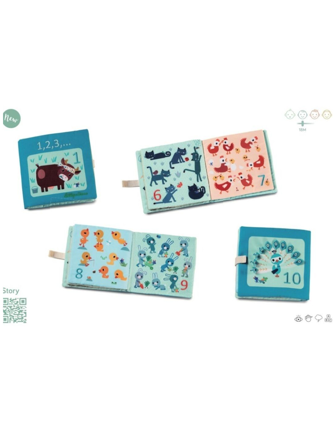 Este divertido libro para contar cuenta la historia de los animales de la granja. El niño descubrirá paso a paso los animales de la granja y aprenderá a contar hasta 10.