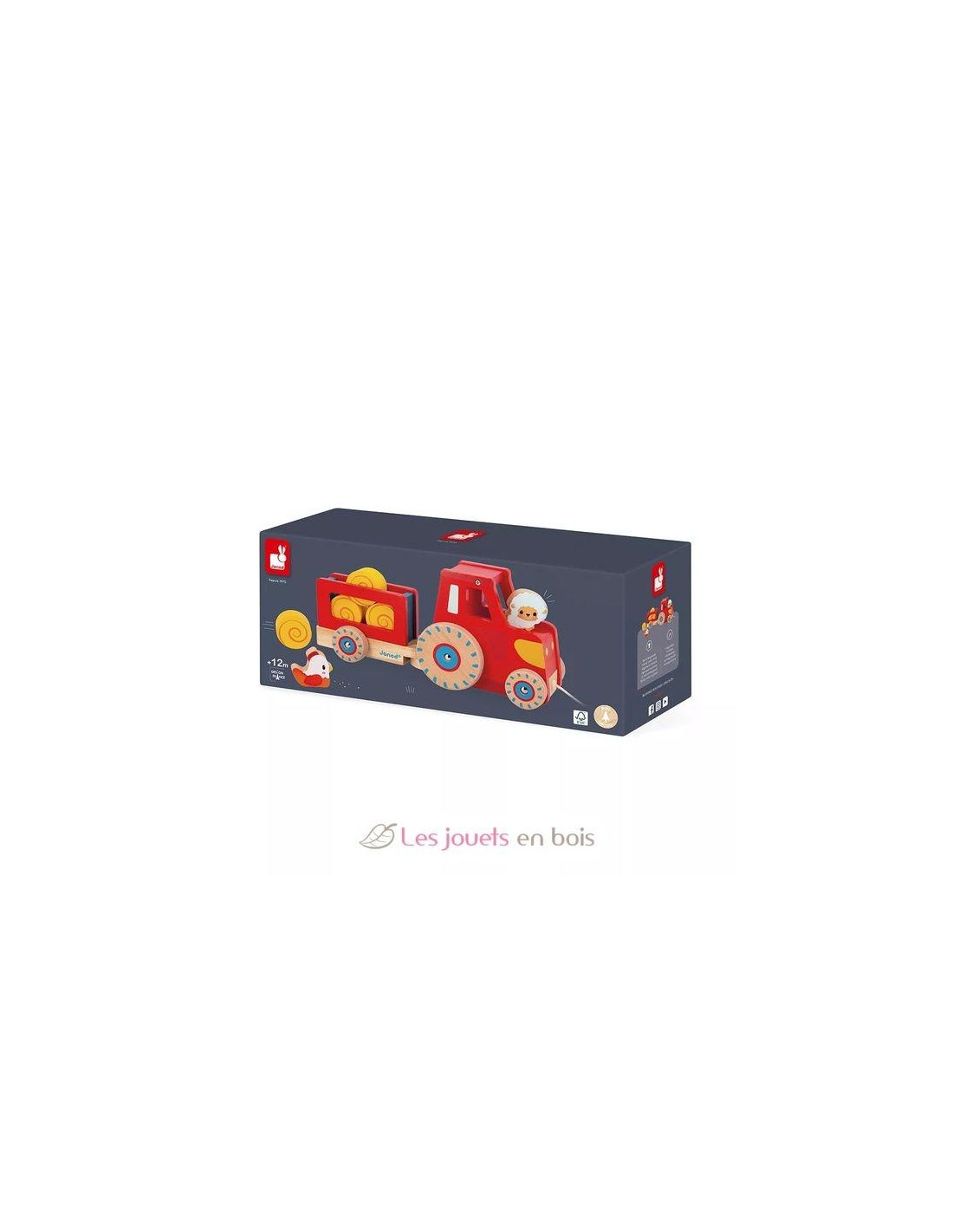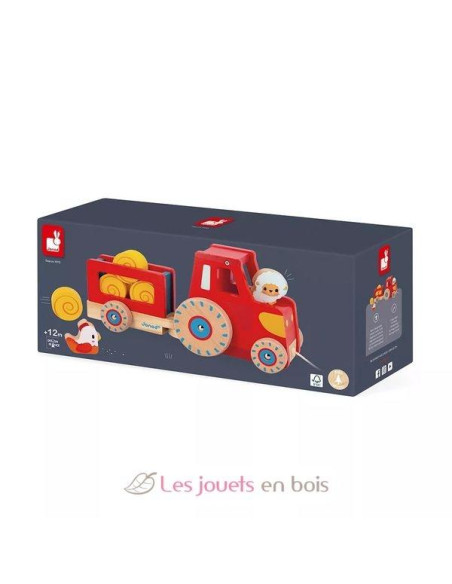 Estimula la motricidad general del bebé y deja que se imagine las historias más entrañables con este bonito juguete de paseo de madera! Consta de un tractor con su remolque desmontable y 6 accesorios: 4 fardos de paja, 1 oveja y 1 gallina. Con este juguete de estímulo inspirado en la granja, el niño se inventará un montón de aventuras y dará rienda suelta a la imaginación.