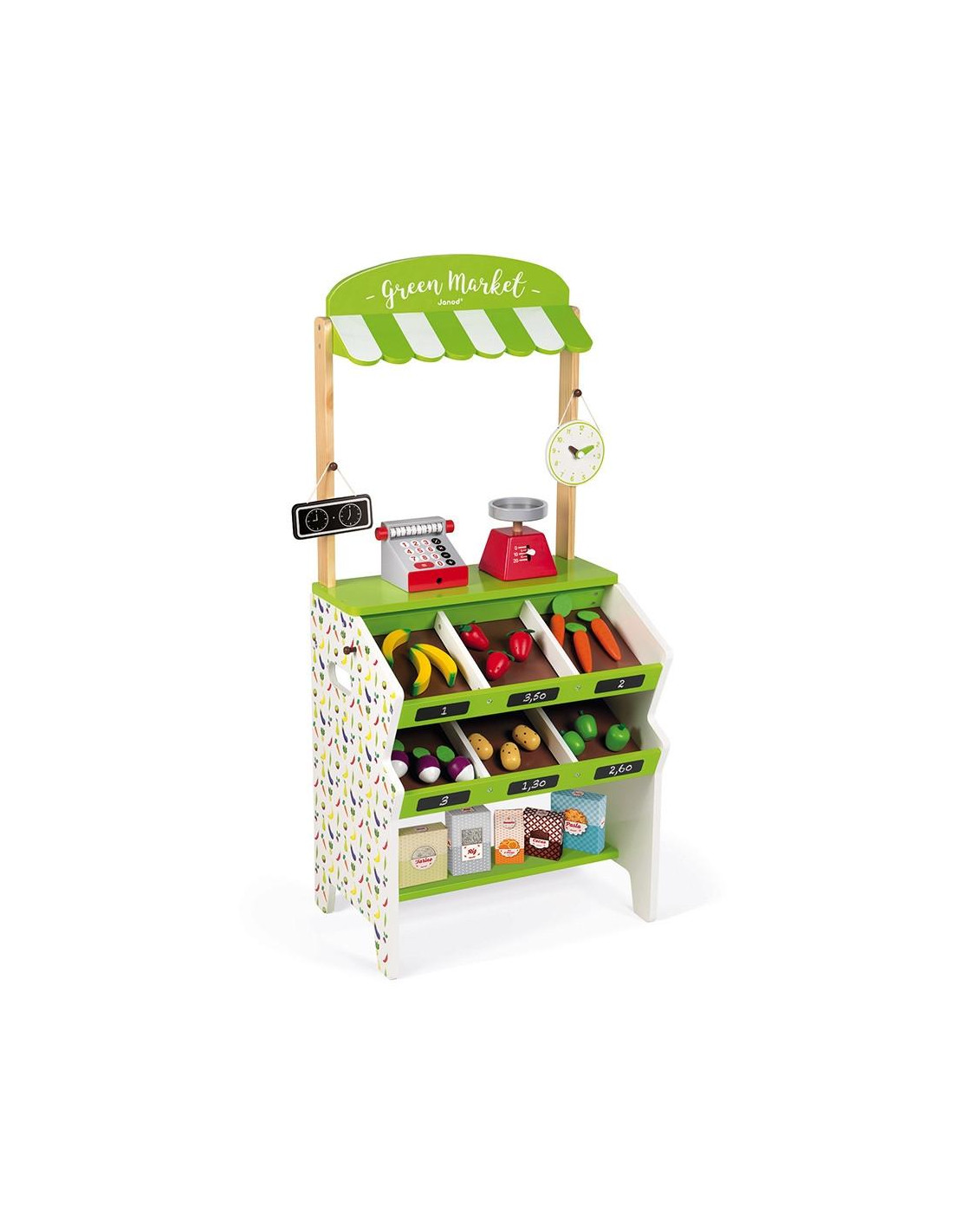 Una bonita tienda con numerosos accesorios para los aprendices a tenderos. La tienda Green Market está equipada con un reloj, una pizarra, una caja de...