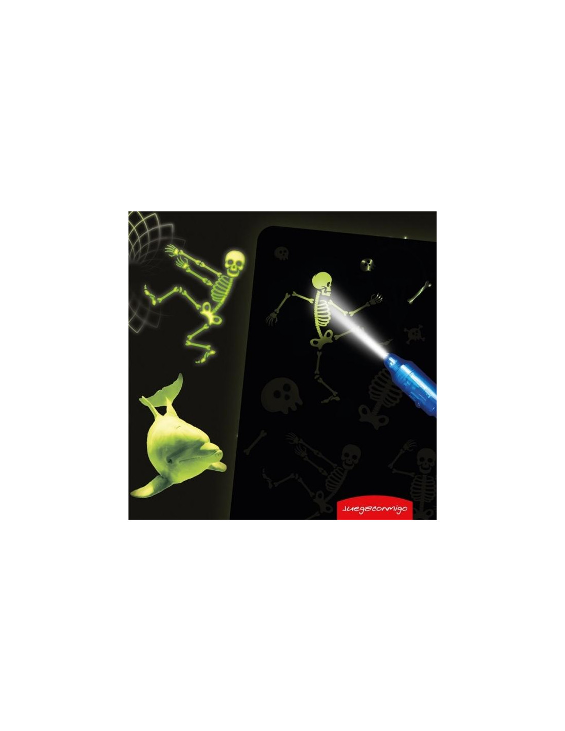 Vibrantes dibujos luminosos, los niñ@s se divertirán y fomentará su creatividad e imaginación de forma original e interactiva. El tablero fotosensible atrapa la luz permitiendo generar dibujos en la oscuridad que duran varios minutos en la pizarra antes de desvanecerse.