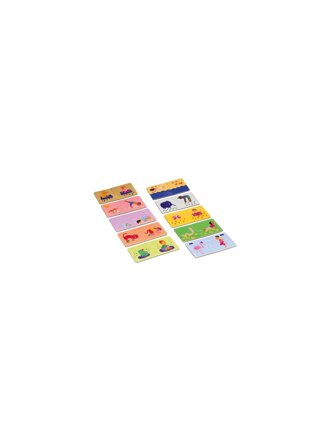 Con el Yoga Puzzle Pairs los niños aprenderán a contar, los animales y los colores. Además, ¡pueden hacer ejercicio físico imitando las figuras de yoga de los puzles.