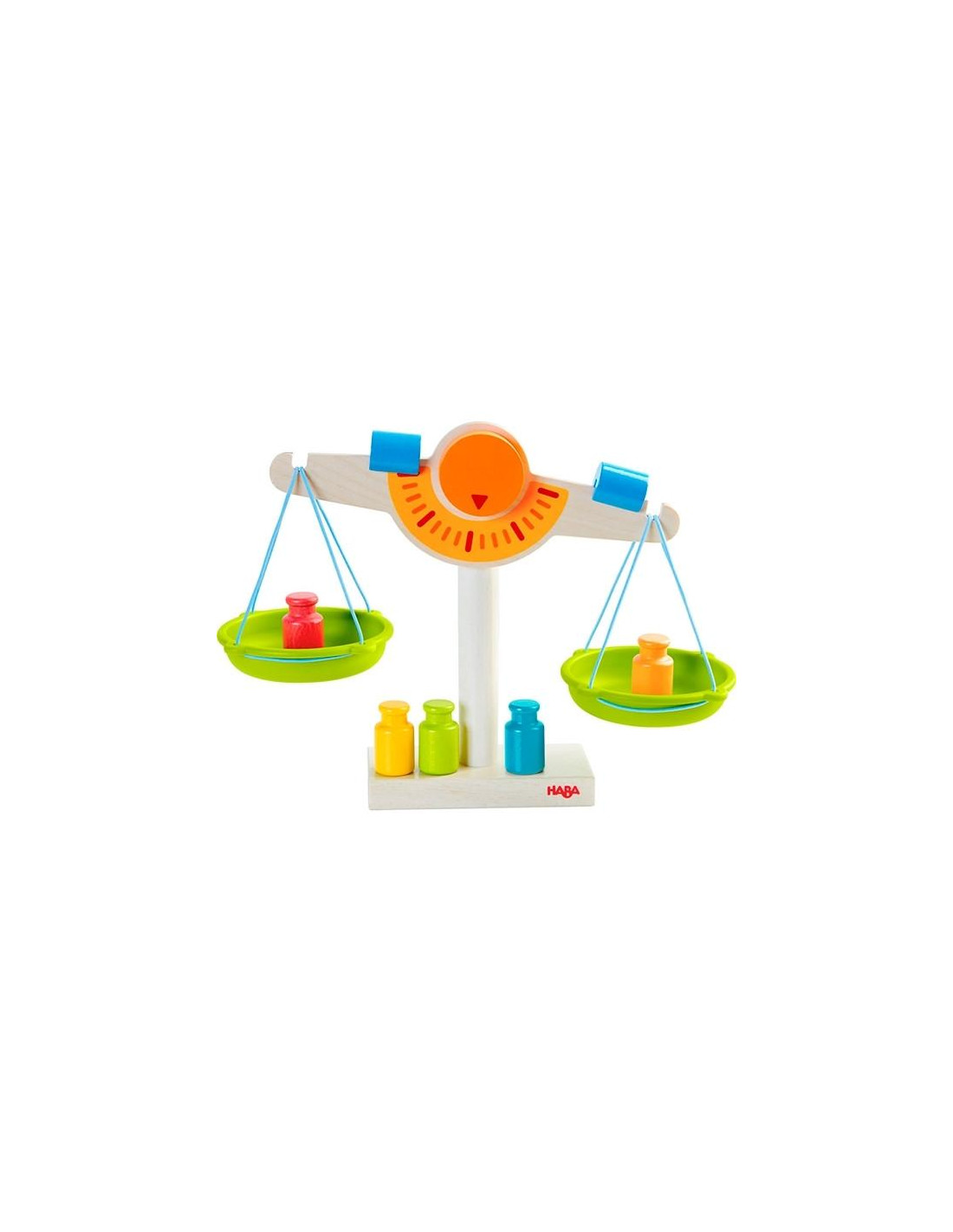 BALANZA PARA TIENDA DE JUGUETE Con esta balanza de colores de Haba los peques podrán pesar todos los alimentos de una manera fácil y divertida. Viene con 5 pesas y 2 contrapesos. Ideal para utilizarla junto con la Mini shop que también es teatro a la vez :), con la Mini tienda o el Tenderete de Haba.