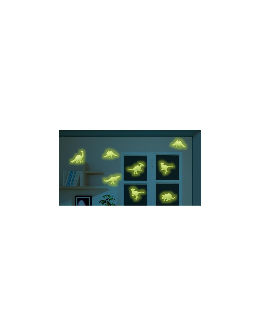 Los peques podrán jugar con sus propios dinosaurios brillantes en la escena pop-up entregada con el juego. Las figuras incluyen zona adhesiva en ambos lados y por lo tanto, también tienen la opción de pegarlos en la pared de su habitación, convirtiéndola en un verdadero escenario jurásico.