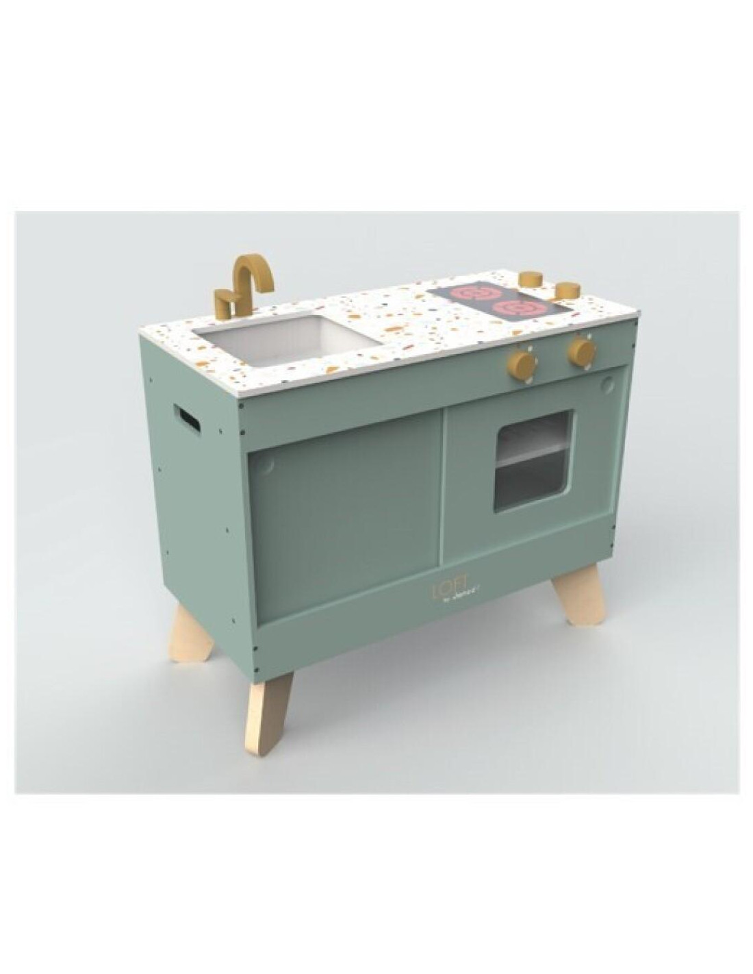 ¡Poneos el gorro, cocineros, tenemos una comida que preparar! Descubra esta magnífica cocina Loft de madera con toques vintage. Su hijo podrá divertirse e inventar muchas historias gracias a las numerosas funciones y accesorios que ofrece esta cocina. 1 fregadero, 1 placa de cocción impresa, botones giratorios con sonido y 2 puertas correderas para el horno y el armario. En su interior, 1 estantería permitirá guardar los 7 accesorios metálicos (1 espátula, 1 cuchara de pasta, 1 cazo, 1 espumadera, 1 colador, 1 cacerola y 1 sartén) y el guante de tela. Ideal para desarrollar la imaginación de su hijo. Juguete de madera y pintura al agua. Juguete de imitación para niños a partir de 3 años.