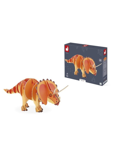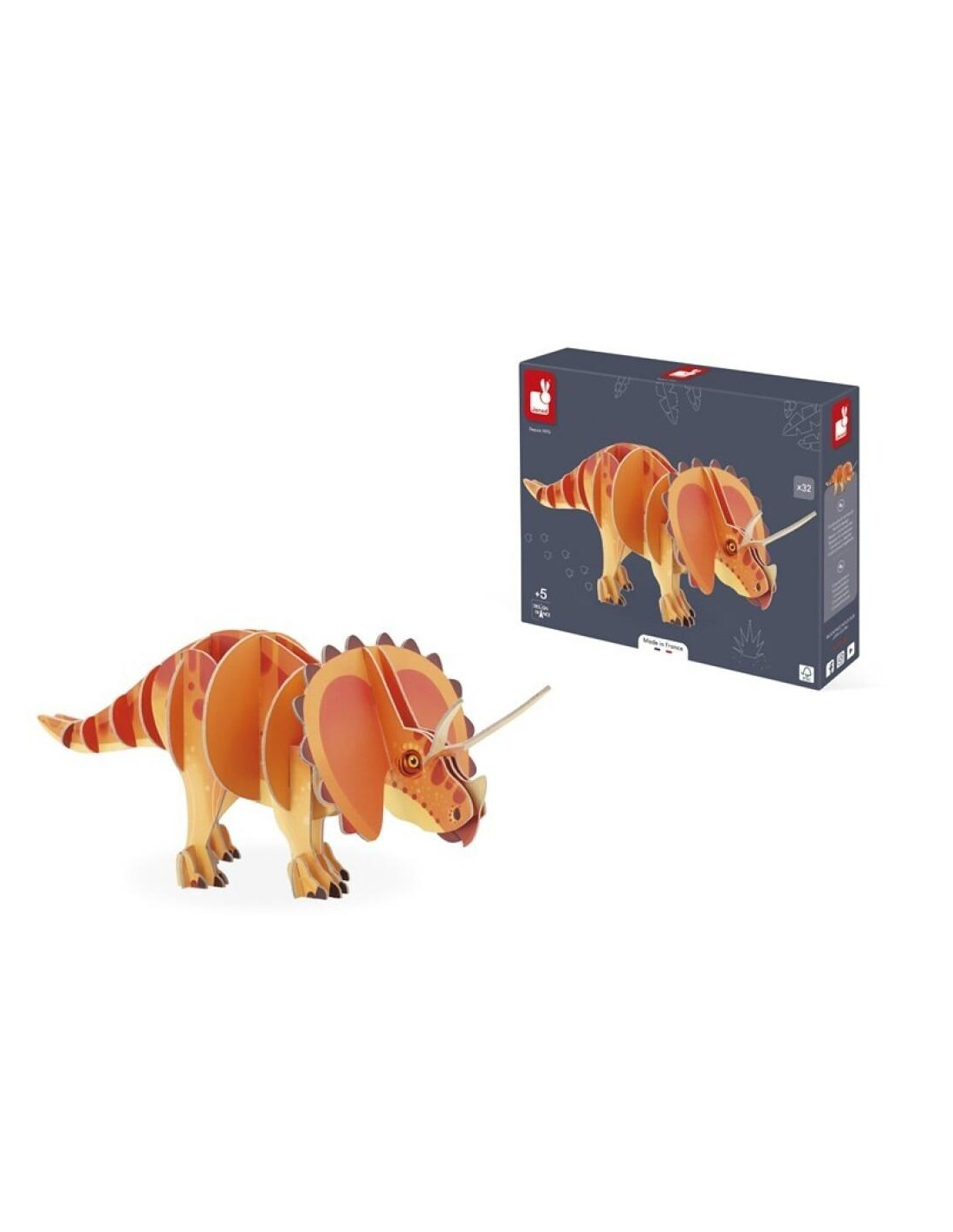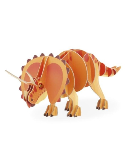 Con su gran collar y sus 3 impresionantes cuernos sobre su nariz, este es uno de los dinosaurios más conocidos: el Triceratops. Este puzle 3D de 32 piezas impresas por ambas caras devuelve todo su esplendor a este famoso dinosaurio. Es fácil de montar gracias a sus instrucciones de montaje. Puzle fabricado en Francia, de cartón FSC™ y a base de tintas vegetales. Apto para niños a partir de 5 años.