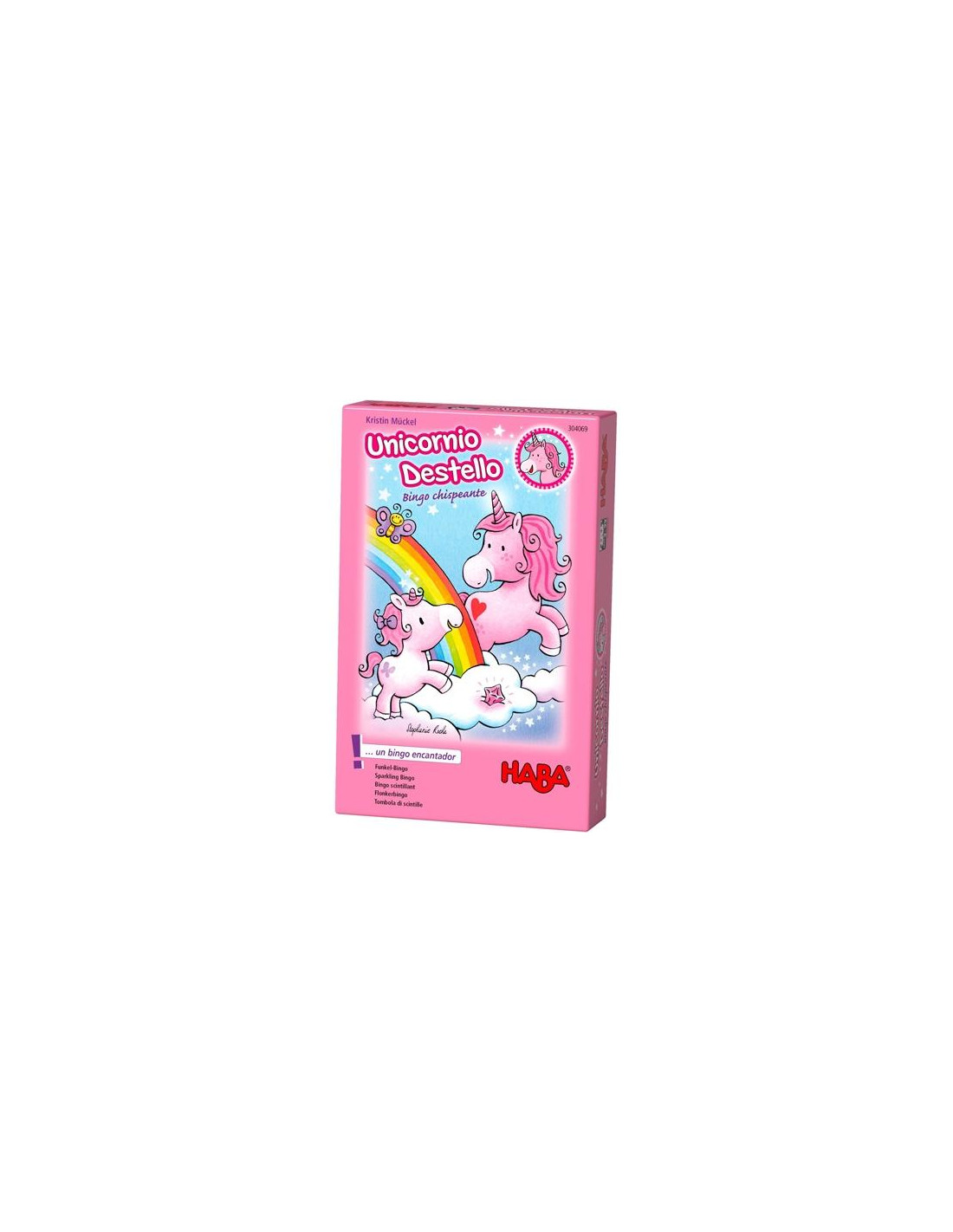 Unicornio destello: bingo chispeante es un juego de mesa para niños de Haba en donde los jugadores podrán jugar al bingo con Unicornio Destello y sus amigos. El ganador será el primero que consiga una fila con cuatro cristales.