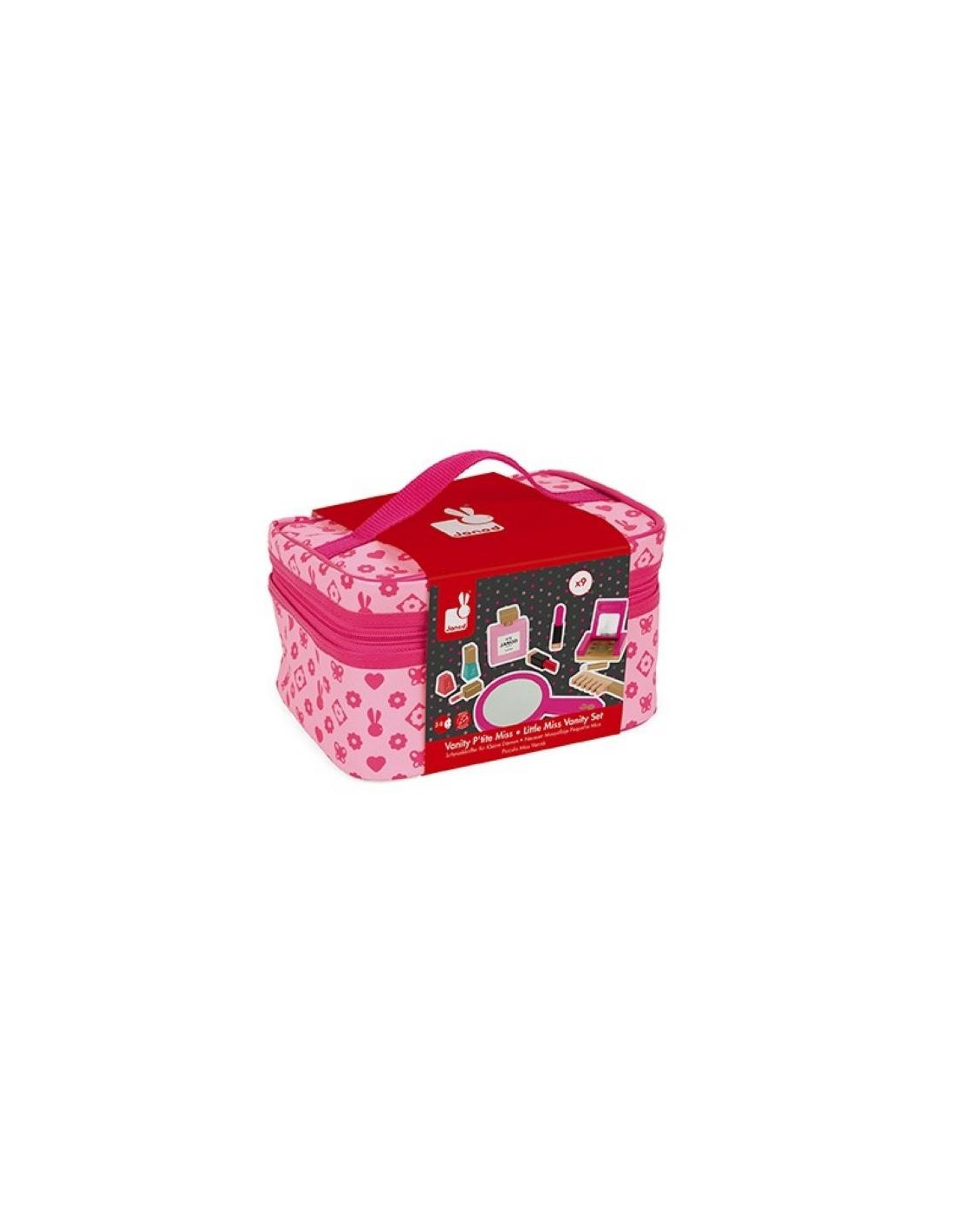 Juguete de madera, para niños de 3 a 8 años. ¡Todo lo necesario para convertirte en la más bella de las P’tites Miss! 9 accesorios de madera: un gran espejo, une paleta de maquillaje con pincel y espejo integrado, 2 lápices de labios, 2 lacas de uñas, 1 lápiz negro para los ojos, 1 botella de perfume, 1 peine.