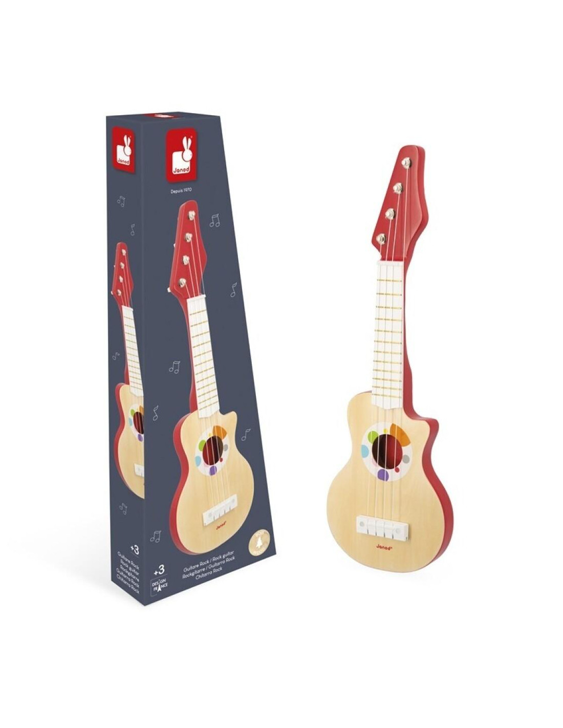 ¡Deje que su hijo muestre la estrella de rock que lleva dentro con esta bonita guitarra de imitación! El aspecto de esta guitarra está perfectamente adaptado a los rockeros principiantes que quieren iniciarse en la música. Este juguete permitirá a su hijo descubrir los sonidos y despertar su sentido del ritmo. Largas horas de juego garantizadas, la guitarra incluye un juego de cuerdas adicionales. ¡Perfecta para interpretar a las estrellas y ofrecer conciertos frenéticos! Juguete de imitación musical de madera para niños a partir de 3 años.