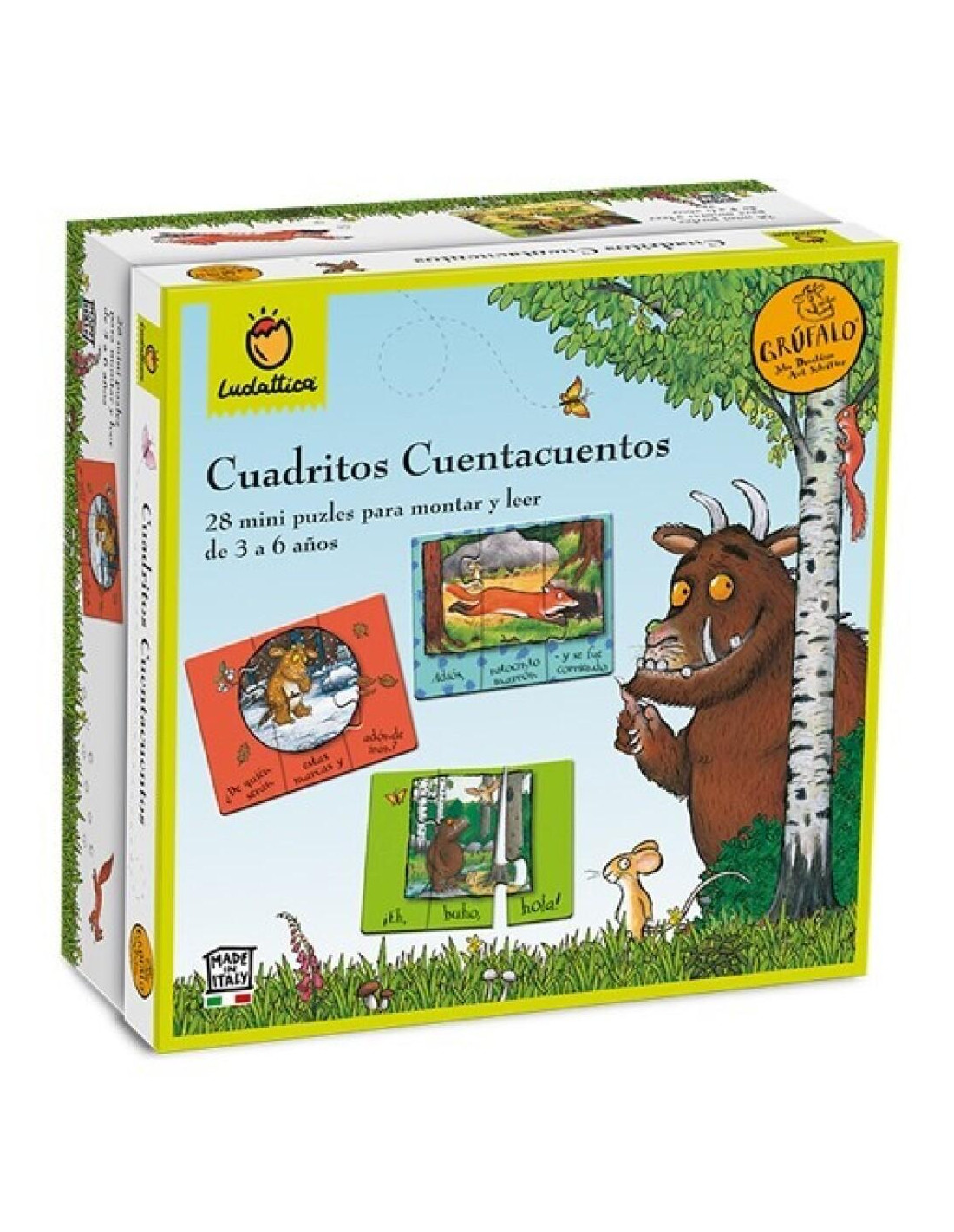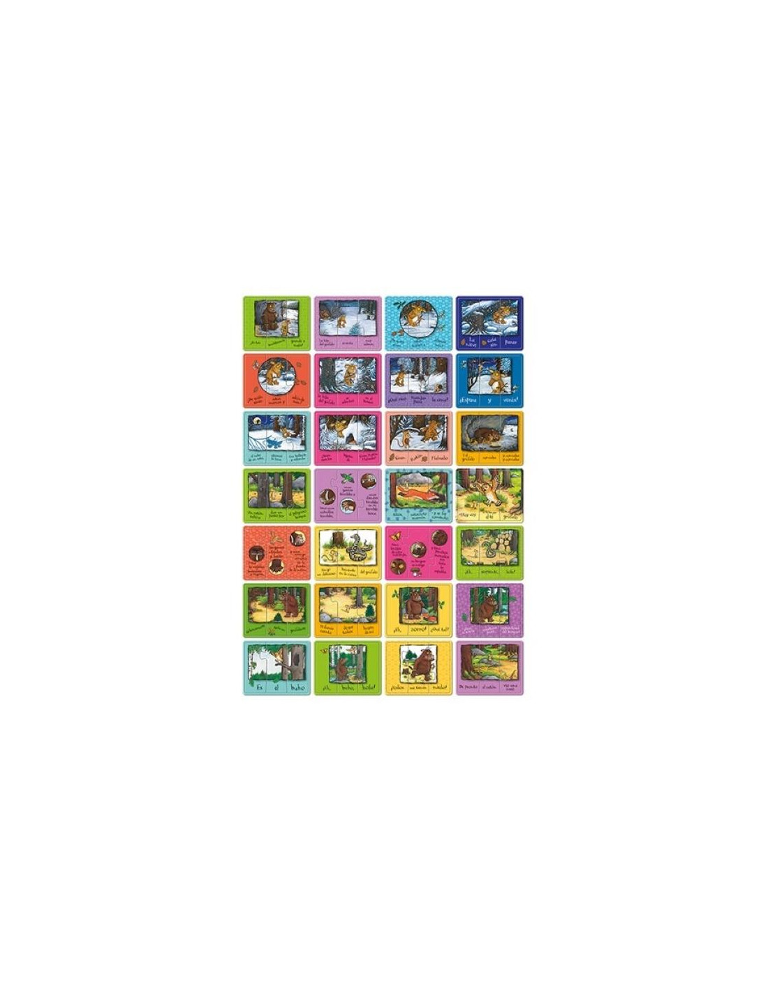 OTROS DETALLES: Set de 28 puzzles de 3 piezas con escenas de cuento. Una vez montados, cada puzzle incluye una frase que corresponde a una parte de la historia de El Grúfalo.