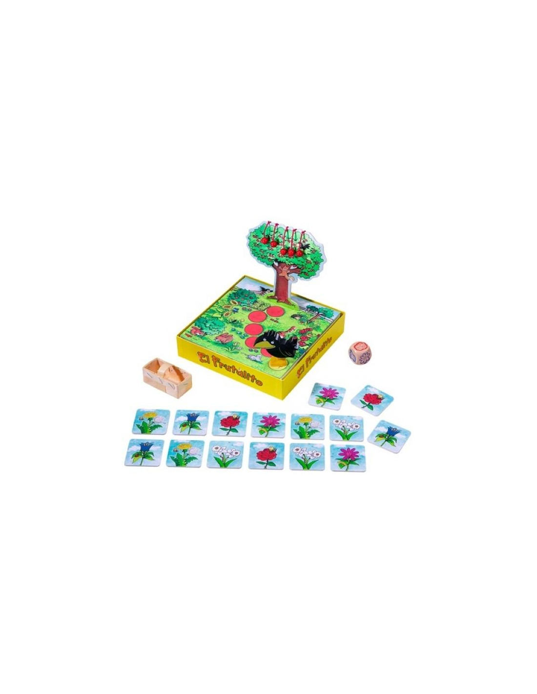 CONTENIDO: 1 tablero de juego con un árbol cerezo 3D, 1 cuervo, 5 pares de cerezas, 1 cesta pequeña, 1 dado de colores, 15 cartas flores, 1 instrucciones del juego.