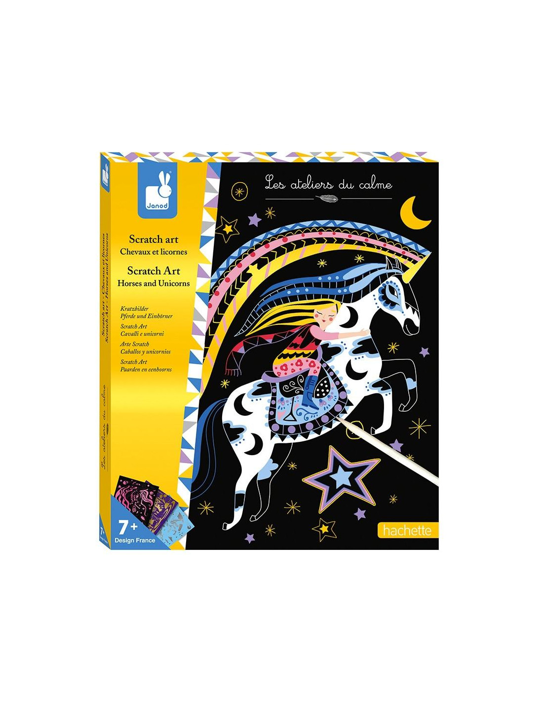8 tarjetas para rascar, 1 herramienta de madera y 1 manual con modelos y instrucciones.
