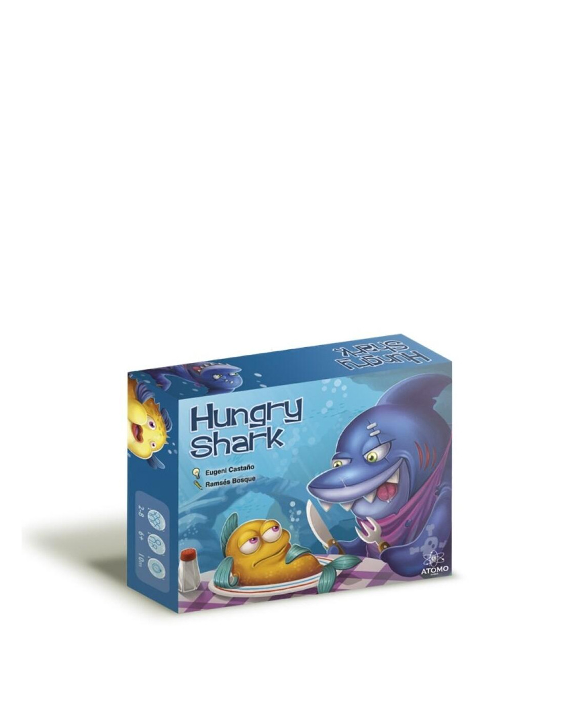 HUNGRY SHARK es un juego de velocidad del autor español Eugeni Castaño, conocido por otros exitosos títulos como el Cargolino Valentino. Ahora nos sorprende con un juego para toda la familia a partir de 6 años, compuesto por 54 cartas y una duración media de 10 minutos.
