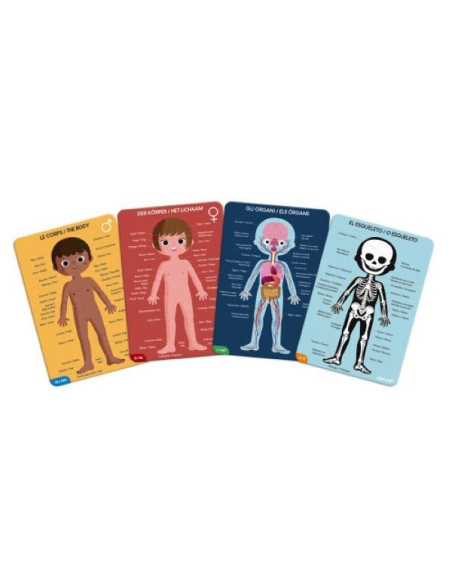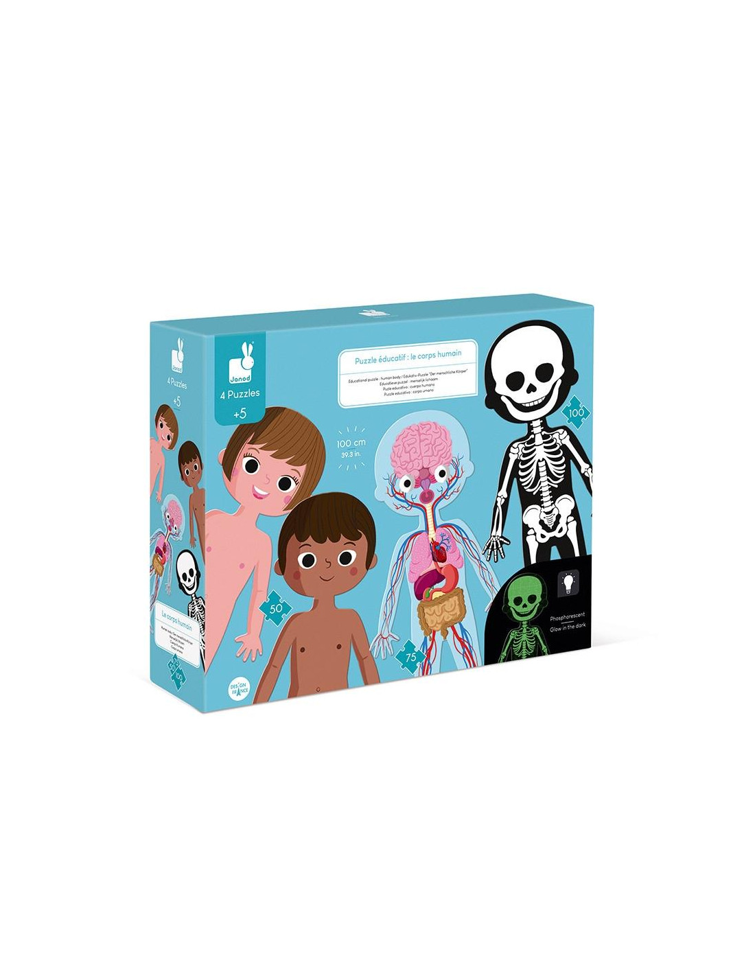 4 puzles gigantes sobre el cuerpo humano 1 puzle por ambas caras de 50 piezas niño/niña 1 puzle de 75 piezas sobre los órganos 1 puzle de 100 piezas...