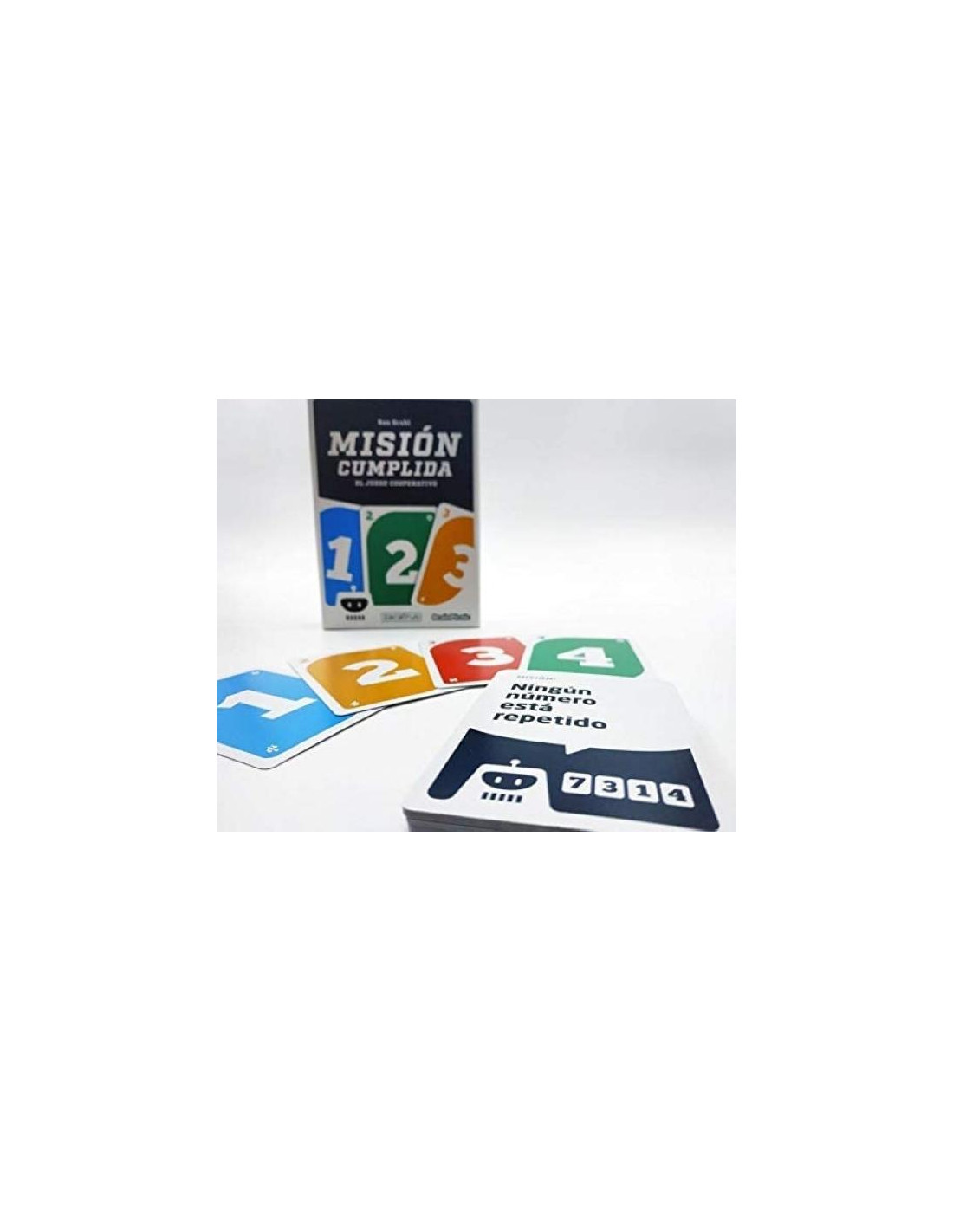 Mision Cumplida es un juego de cartas en el que, cooperativamente, tendremos que cumplir cierto número de misiones. Usando cartas de diferentes colores y números tendremos que ir “ajustando” cuatro cartas situadas encima de la mesa, hasta llegar a cumplir los requisitos de las cartas de misión y llegar a superar nuestro reto. Misión Cumplida es un juego cooperativo, pero, como no puede ser de otra forma, hay algunas reglas que tenemos que cumplir, como, por ejemplo, que entre los jugadores podremos hablar de la mejor forma de cumplir las misiones (de las posibles 54 que contiene el juego), pero sin nombrar los colores y números de las cartas que tenemos en la mano. ¡Intenta superar el reto antes de quedarte sin cartas!