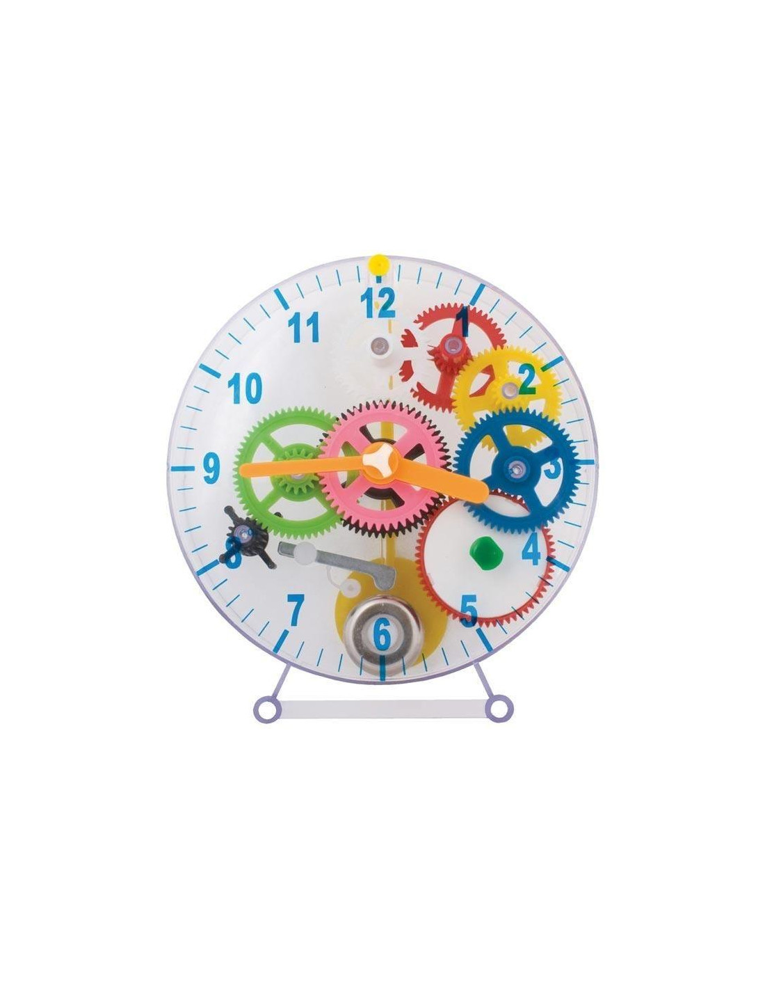 Siguiendo las instrucciones detalladas montamos un reloj transparente y vemos funcionar su mecanismo interior.