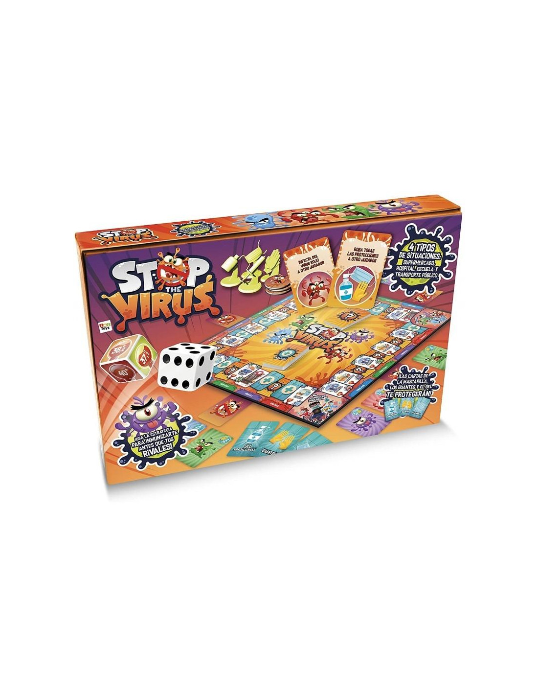 Stop the virus es un juego de mesa en el que tendrás que ser el primero en conseguir inmunizarte de 4 virus para poder ganar. ¡Deberás protegerte adecuadamente! Avanza por el tablero y supera las diferentes situaciones que el juego plantea y que pueden llegar a infectarte. ¡Intenta entorpecer a tus rivales con los virus que vas dejando por el camino! ¿Serás el que mejor se proteja? De 2 a 4 jugadores. Recomendado a partir de 8 años.