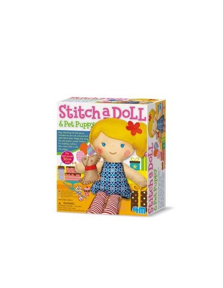 Divertido y fácil set de costura que ayudará a los peques a crear su propia compañera de tela. Incluye piezas de fieltro pre-cortado y telas coloridas y florales para crear un look despampanante para la muñeca y su simpático perrito.