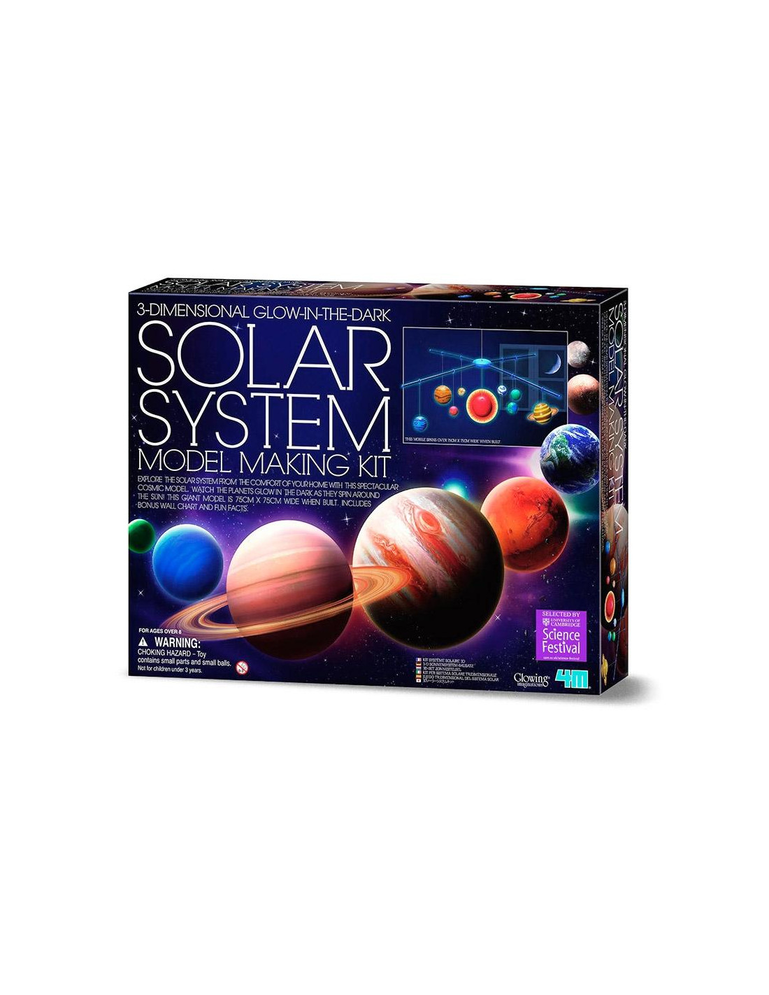 Un espectacular móvil del Sistema Solar que te acercará al universo de la forma más creativa. Construye cada planeta paso a paso y píntalos a tu gusto. Podrás añadirles un toque de pintura fluorescente para que brillen en la oscuridad. ¡Cuélgalo en tu habitación y disfruta de las vistas!