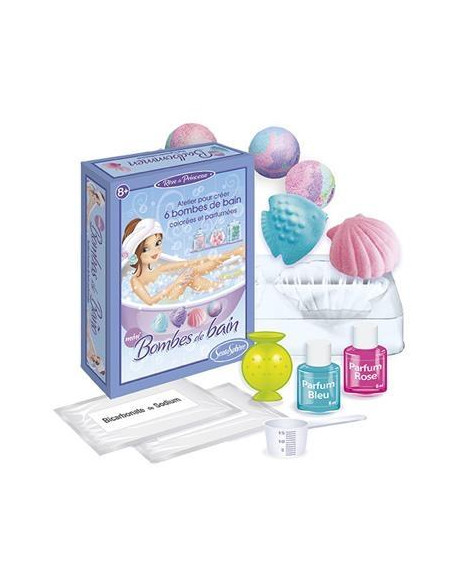 Déjate llevar por tu inspiración con el set de mini bombas de baño, con el que podrás preparar manualmente bombas de baño con los moldes y productos para darte un baño relajarte. - Piezas: 10 - Incluye: 1 bote de bicarbonato de sodio, 1 colorante de esencia rosa, 1 colorante de esencia amarillo, 2
