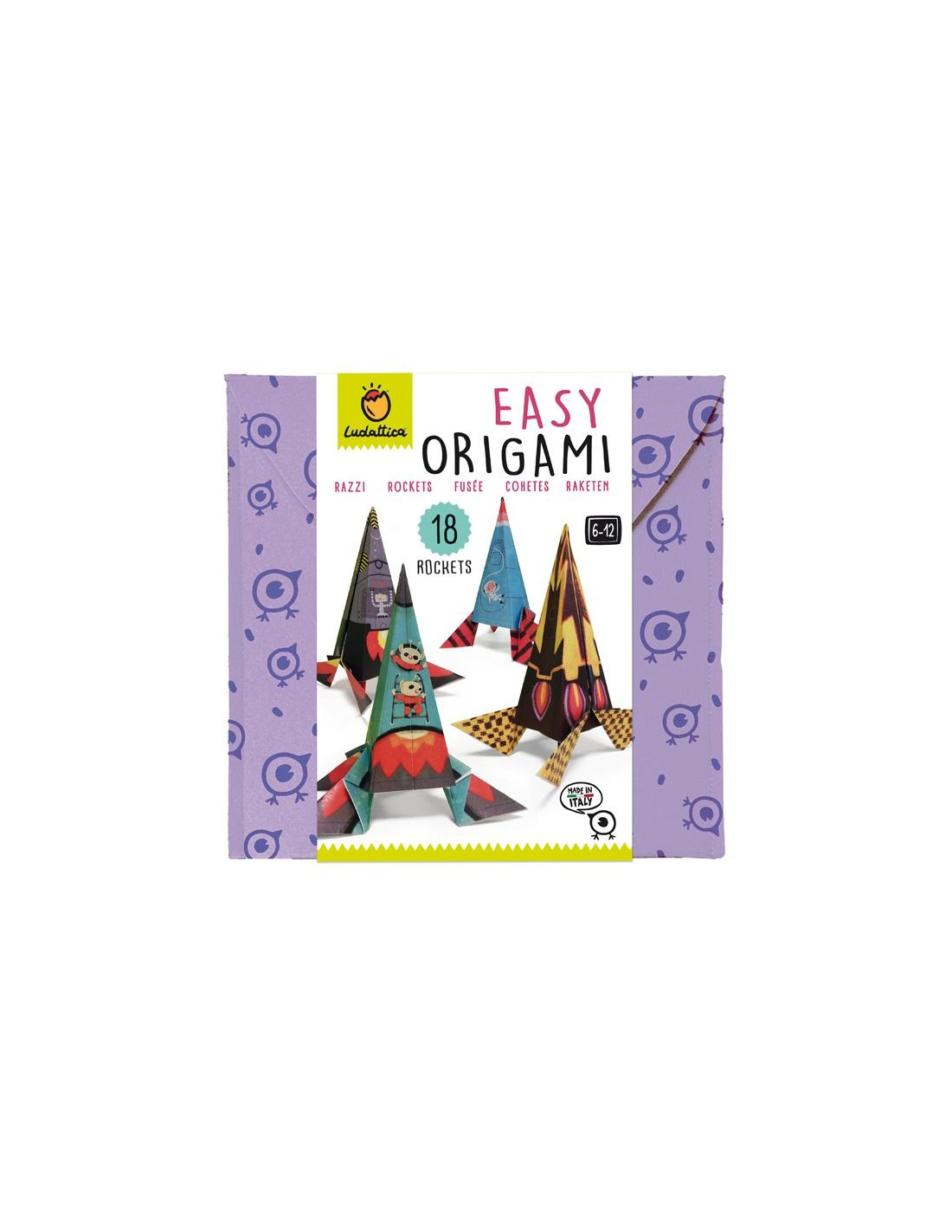Este set se ha diseñado específicamente para permitirles a los niños más pequeños también ponerse a prueba en el arte del origami. De una manera sencilla y divertida, se pueden construir y decorar 12 originales cohetes. El niño dobla el papel siguiendo las instrucciones ilustradas de la guía y después recorta y pega los elementos típicos de cada creación. Un juego que desarrolla la capacidad de concentración, la motricidad fina y la lógica, pero también la imaginación. El juego se guarda en una suave y colorida bolsa de paño, muy cómoda