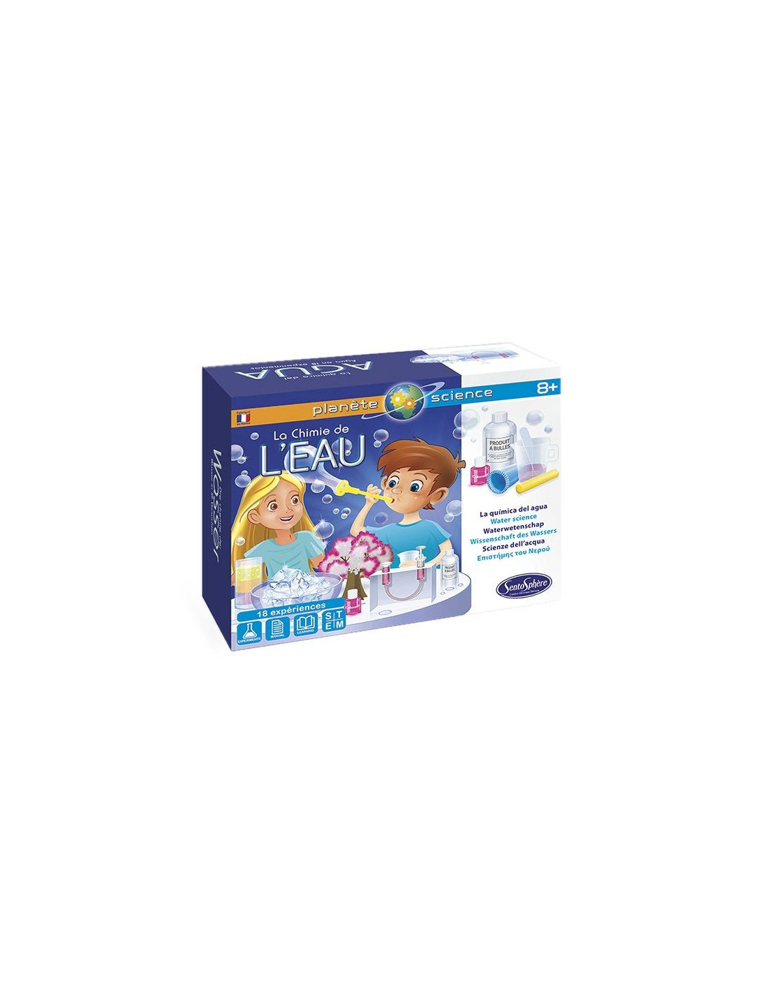 Con este kit de Sentoshpère los más pequeños de la casa podrán descubrir los fantásticos fenómenos del agua como presión, absorción, destilación, filtración, condensación ¡y la creación de las pompas!