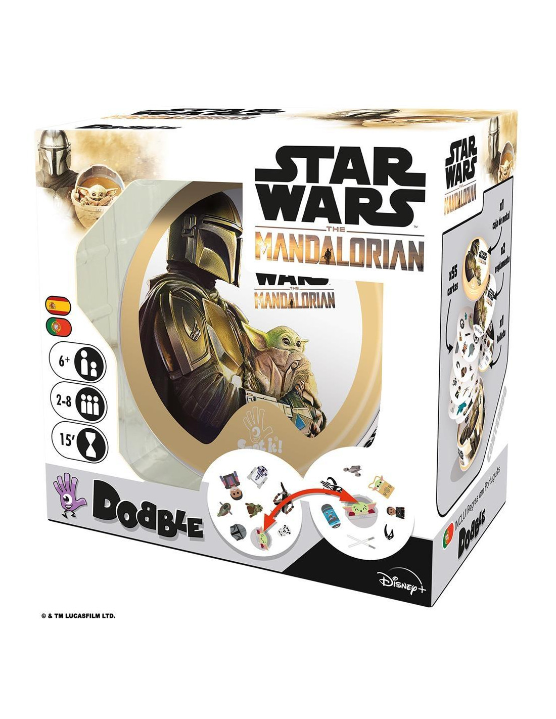 DOBBLE STAR WARS MANDALORIAN Viaja a una galaxia muy, muy lejana con Dobble Star Wars: The Mandarlorian. ¡Toda la emoción del Dobble original, ahora con símbolos con los personajes de la serie de Disney + The Mandarlorian!