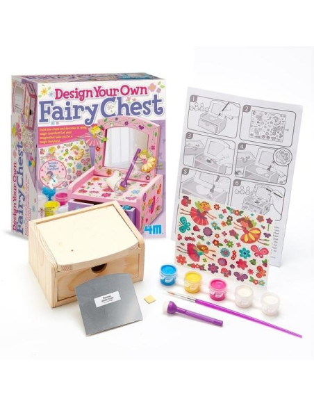 Los peques pintarán su propio cofre y lo decorarán con los transfers mágicos incluidos. ¡Deja que tu imaginación te transporte a un verdadero cuento de hadas! Edad: A partir de 3 años. Características: Incluye: pinturas (colores primarios y blanco), transfers mágicos, 2 pinceles y cola.