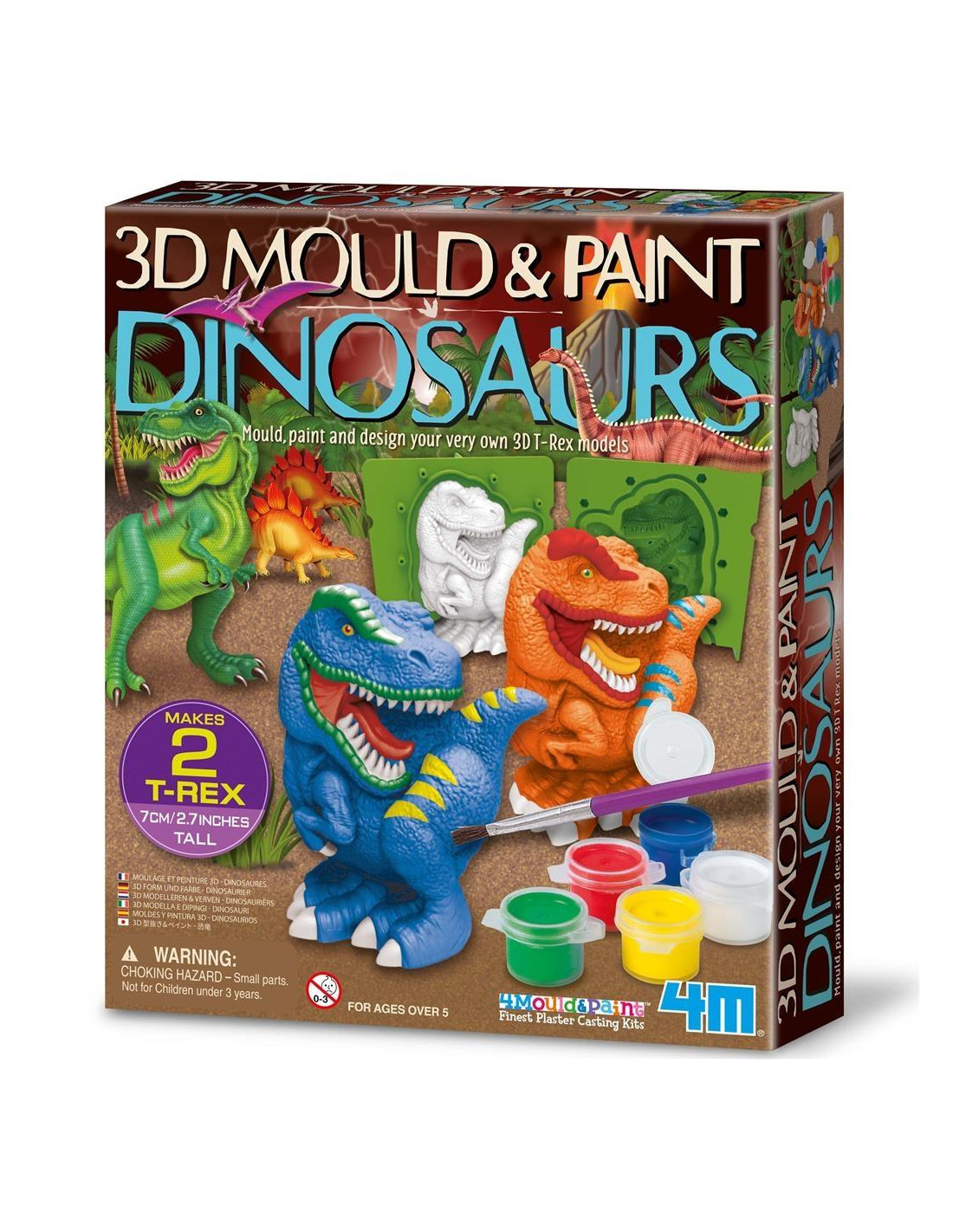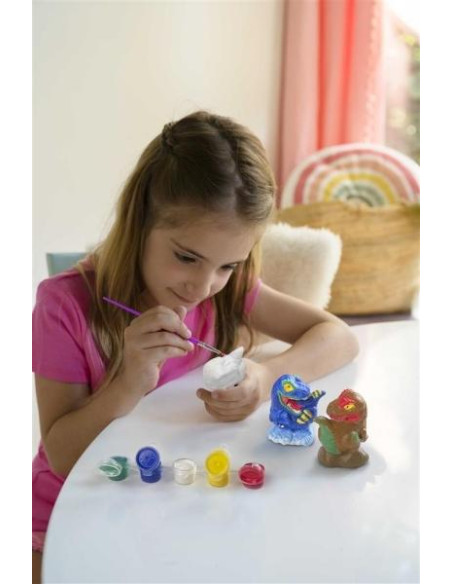 Crea tus Dinosaurios en 3D. Juego de pintar y moldear. Contenido: polvo de yeso, molde, una tira de pintura de 5 colores y 1 pincel de pintura. Insstrucciones en el interior.