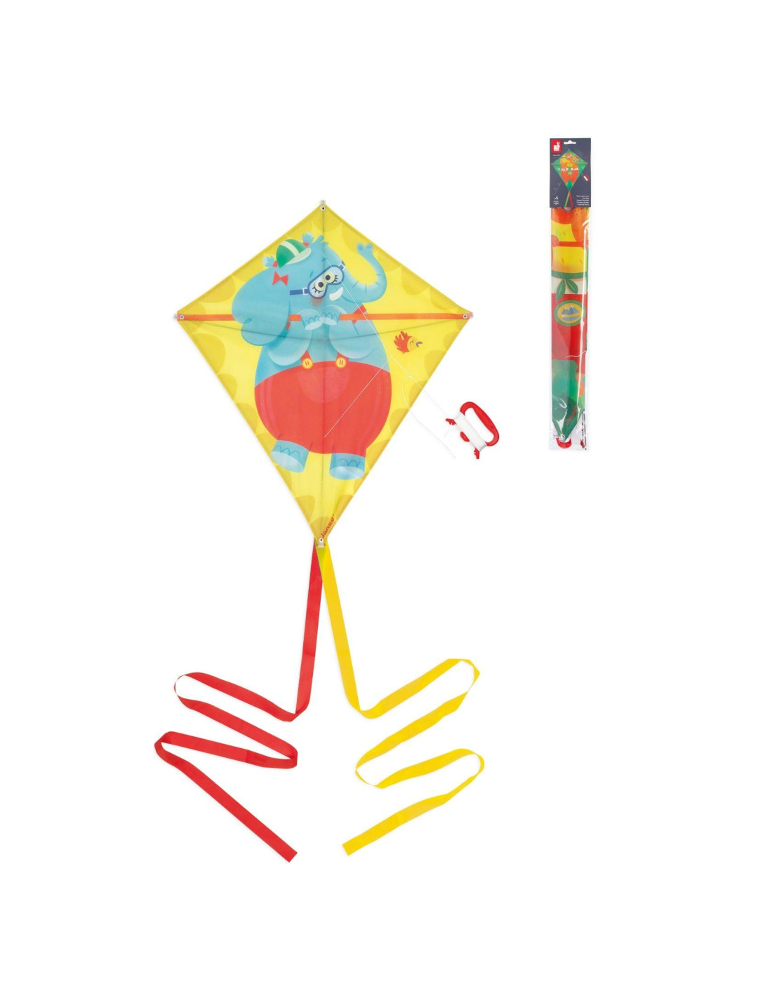 ¡Alza el vuelo con este juego de habilidad! Se trata de una cometa que invita a los niños a partir de 5 años a lanzarse a vivir nuevas aventuras. Esta colorida cometa con forma de elefante viene con un asa ergonómica y dos cintas de 1,5 metros. Es un juego de exterior ideal para desarrollar la coordinación mano-ojo y, al mismo tiempo, pasar grandes ratos disfrutando en el jardín. Gracias a este juego al aire libre, los niños pueden soñar con ser pilotos de cometa, guiándola por el cielo azul y haciendo que las cintas bailen con el viento. Ideal para un día soleado en el parque o la playa, esta cometa amarilla promete horas de diversión juntos. La sensación de sujetar el mango ergonómico y controlar el vuelo es una experiencia inolvidable para los niños. Este juego de exterior forma parte de nuestra gama APPLEPOP, una colección de juegos divertidos y originales inspirados en el mundo de la feria.