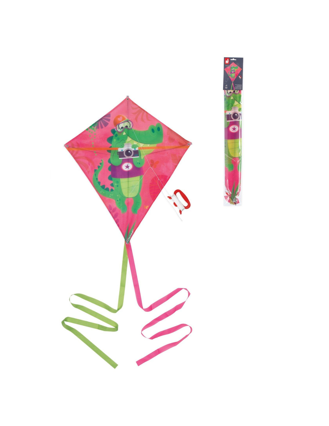¡Mira, un cocodrilo volador! Con esta cometa, los niños a partir de 5 años se lanzan a vivir nuevas aventuras. Esta colorida cometa con forma de cocodrilo viene con un asa ergonómica y dos cintas de 1,5 metros. Este juego de exterior es ideal para desarrollar la coordinación mano-ojo. Gracias a este juego al aire libre, los niños pueden soñar con ser pilotos de cometa, guiándola por el cielo azul y haciendo que las cintas bailen con el viento. Ideal para un día soleado en el jardín o la playa, esta cometa promete horas de diversión juntos. La sensación de sujetar el mango ergonómico y controlar el vuelo es una experiencia inolvidable para los niños. Este juego de exterior forma parte de nuestra gama APPLEPOP, una colección de juegos divertidos y originales inspirados en el mundo de la feria.