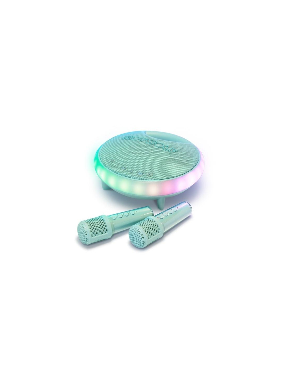 KIDYKARAOKE Kidykaraoke es un altavoz bluetooth con 2 micrófonos inalámbricos al que podemos enviar canciones (desde Spotify o youtube, por ejempo) y cantar sobre ellas de manera que nuestra voz se oiga clara y nítida a la vez que la canción.. ¡Ah! También podemos optar por aplicar efectos de sonido a las voces (pitufo, graves, normal...)