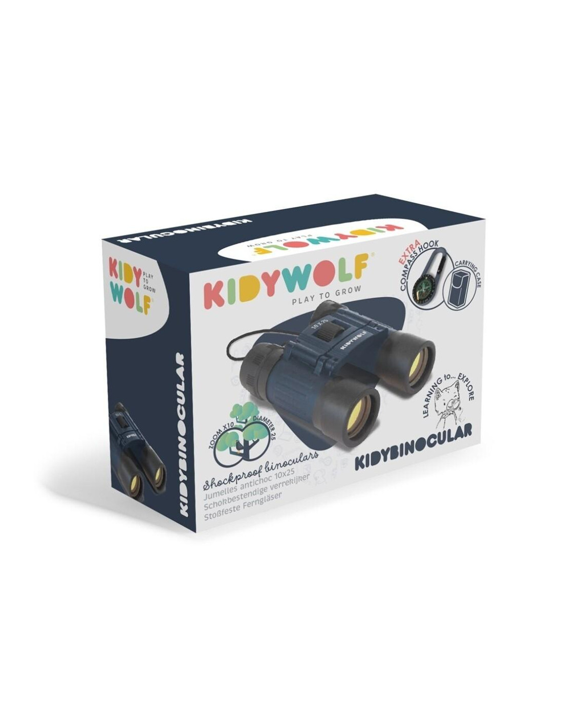 KIDY BINOCULARES . Deja que tus hijos descubran el mundo que les rodea con los binoculares Kidbinoculars. Diseñados para jóvenes aventureros, estos binoculares ofrecen una visión clara y precisa gracias a su lupa de 10x y diámetro objetivo de 25 mm. Es compacto y ligero, ideal para practicar senderismo, actividades al aire libre o simplemente observar la naturaleza desde la ventana, y viene con una bolso práctico y cordón para facilitar el transporte.