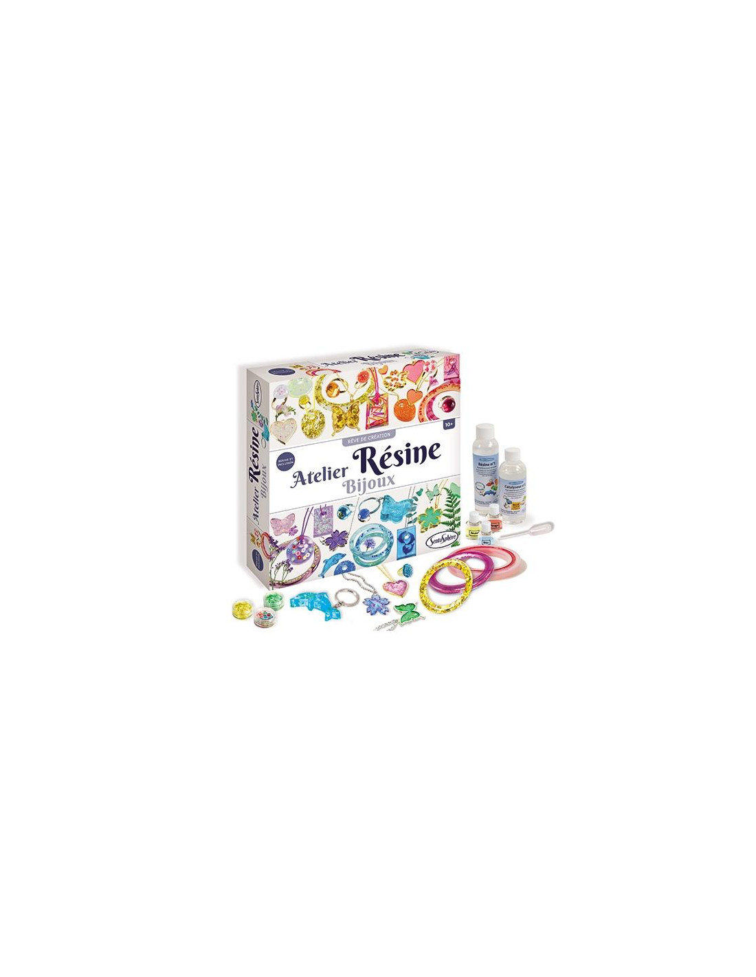 Todo lo que hay que hacer es mezclar resina con un catalizador, eventualmente colorear la preparación y luego verterla en los diferentes moldes y colgantes ofrecidos. Las lentejuelas y las mini frutas propuestas permiten realizar inclusiones para realzar estas futuras piezas de joyería. ¡20 horas más tarde, estas creaciones se pueden desmoldar fácilmente para convertirse en magníficas pulseras, anillos, collares y llaveros!