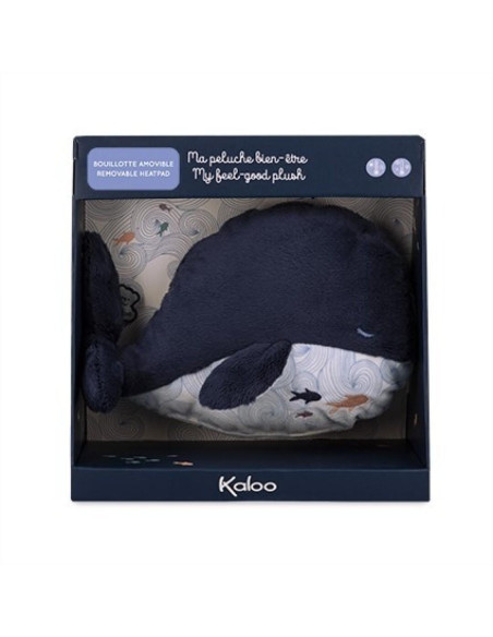 Este cojín térmico natural con forma de ballena de peluche es ideal para aliviar las molestias del bebé desde el nacimiento. Es desenfundable y contiene una bolsa extraíble. El bolsillo lleno de bolas de arcilla y flores de lavanda debe colocarse en el microondas o congelador para un efecto caliente o frío. El acceso a la bolsa está asegurado gracias a un sistema de velcro para un uso seguro. Con su forro azul y suave, le dará al bebé tranquilidad y calma. Su vientre está recubierto con un estampado «danza de las olas» adornado con bordados de peces que recuerdan la calma de las profundidades del mar y la ola de suavidad y bienestar que aporta el peluche. Su generoso tamaño es ideal para dar calorcito a tu hijo en la cama y calmarlo. Sin bolsillo, sirve como peluche para mimos. Será el peluche reconfortante favorito del bebé. El cojín térmico tiene numerosos beneficios, especialmente el alivio temporal del dolor. La lavanda ayuda a conciliar el sueño gracias a sus propiedades calmantes y relajantes. Quite la bolsa antes del lavado a máquina. Se incluyen instrucciones de uso dentro del peluche. Tamaño: 16,5 cm x 31 cm