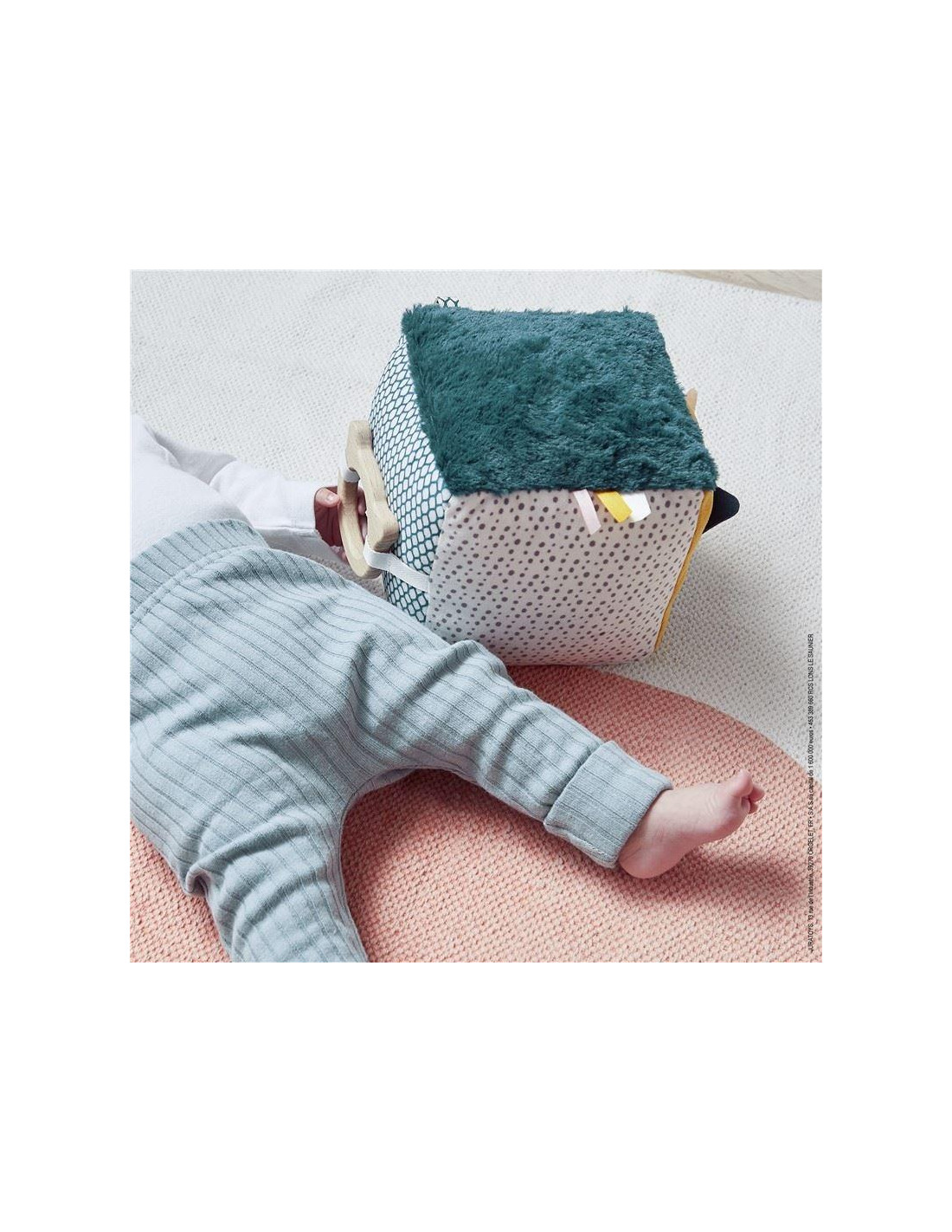 Desarrollado en colaboración con psicomotricistas, este cubo sensorial de 17 cm es ideal para estimular con delicadeza los sentidos del bebé mientras se divierte. El cubo sensorial, suave y mullido, puede atraparse y manipularse fácilmente. Sus numerosas caras de múltiples materiales, texturas y colores permiten desarrollar muy especialmente el tacto del bebé. La adición de la pieza de madera de gato, el papel ruidoso y las cintas son otros elementos que participarán en su despertar sensorial. Este cubo sensorial es ideal para desarrollar los sentidos del bebé y su curiosidad. Puntos fuertes: - Tejidos de diferentes texturas para desarrollar el sentido del tacto del bebé - Colores y estampados con contraste para una mejor percepción de los contrastes - Cintas y un gato de madera para desarrollar la prensión - Papel ruidoso para desarrollar el oído Descubra otros productos de la gama Stimuli de Kaloo para acompañar a su hijo durante todo su desarrollo a través de los llamados juegos sensoriomotrices Medidas: 16x16 cms