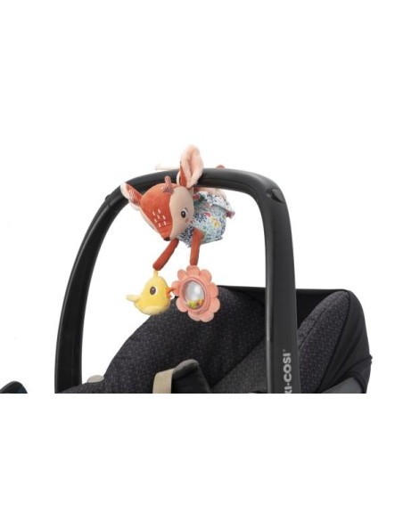 Stella y su amigo el pájaro juegan alegremente encima del bebé, mientras se aferra a su asiento. Stella juega con los sonidos, el tacto y los reflejos... ¡suficiente para intrigar a tu pequeño!