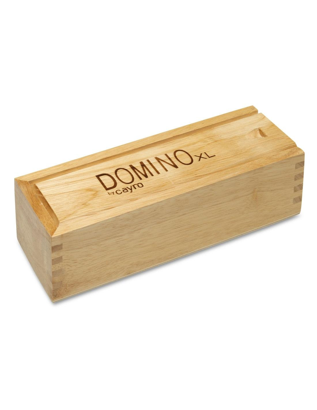 Es un dominó clásico, blanco y negro con la tacha metálica. La diferencia con el resto de los dominós que hay en el mercado, es que la medida de sus fichas es más grande. Concretamente 5,5 x 2,7 x 1,1 cm. Este cambio de tamaño facilita su manejo y la visualización de los puntos.